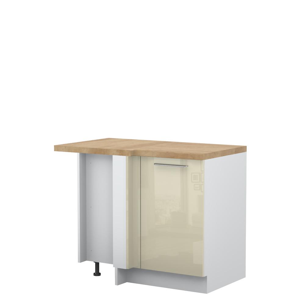 Ugaoni kuhinjski element, sa jednim krilom. Korpus elementa izrađen je od univera, debljine 18mm, u belom drvo dekoru. Front je lakiran UV lakom u visokom sjaju u boji prema Vašem izboru iz ponuđene palete boja ovog modela. Ova napredna tehnologija lakiranja omogućuje četiri puta otporniju površinu fronta na fizička oštećenja i habanje u odnosu na standardno lakiranje. Korpus elementa je kantovan sa zadnje strane. Ima podesive nožice za nivelisanje na svim površinama. Radna ploča debljine 38mm, soft-close šarke, sokla sa dihtung gumom i jedan fah uračunati su u cenu proizvoda. U ponudi je sedam dekora radnih ploča i šest dekora sokle. Umesto jednog faha, može se dokupiti žičani ugaoni element, Z-UG 1/2.Mogućnost odabira više modela ručica u različitim dimenzijama, koje nisu uračunate u cenu elementa. Obezbedite dugotrajnost radne ploče ugradnjom dihtung lajsne. Dihtung lajsna, dužine 4m, dostupna je u dekoru radne ploče. Ukoliko želite, uz izbor dodatne opreme, bele bočne stranice možete zameniti bočnim panelima lakiranim UV lakom u boji prema Vašem izboru iz ponuđene palete boja ovog modela ili od univera u drvo dekoru Nebraska hrast. Istaknite završne bočne strane kuhinje ugradnjom dodatnih panela, debljine 16mm, lakiranih UV lakom u visokom sjaju u boji prema Vašem izboru iz ponuđene palete boja ovog modela ili ugradnjom dodatnih panela od univera debljine 25mm, dostupnim u drvo dekorima bele boje i Nebraska hrast.