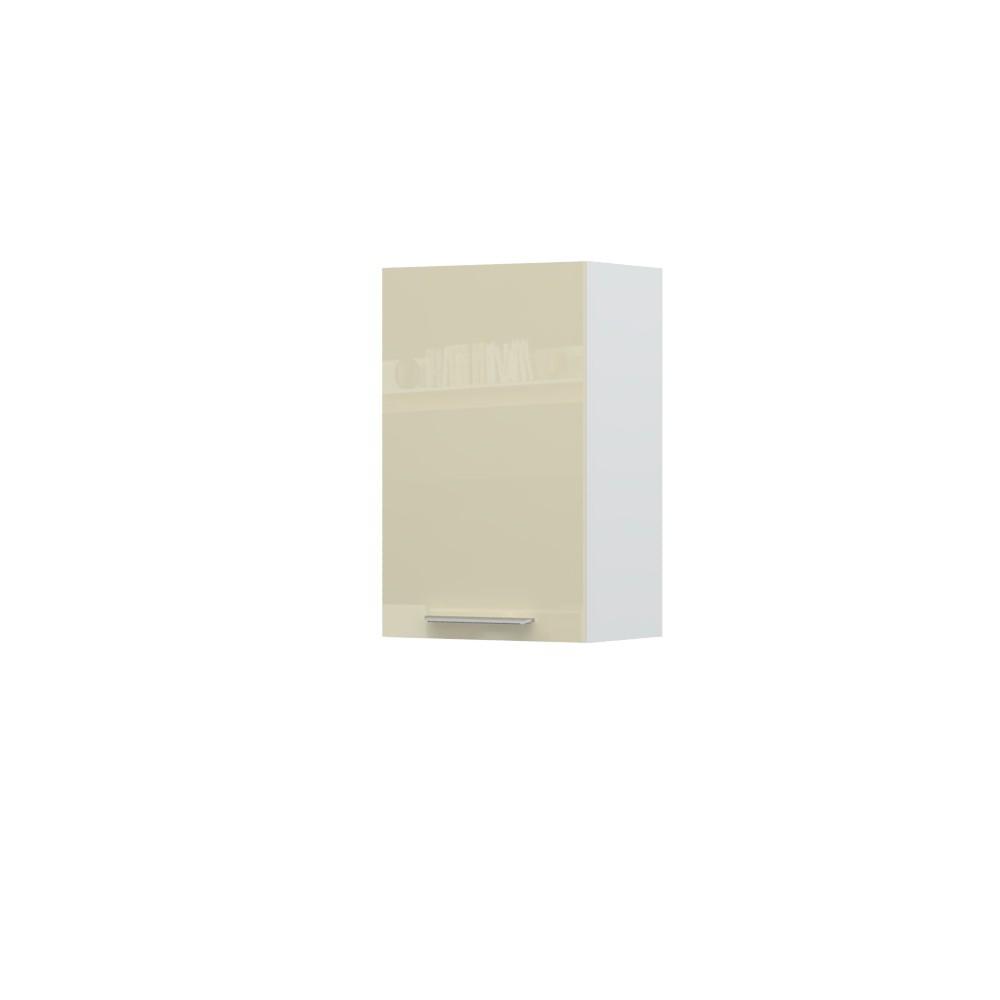 Viseći kuhinjski element, širine 45cm, sa jednim krilom. Korpus elementa izrađen je od univera debljine 18mm, u belom drvo dekoru. Front je lakiran UV lakom u visokom sjaju u boji prema Vašem izboru iz ponuđene palete boja ovog modela. Ova napredna tehnologija lakiranja omogućuje četiri puta otporniju površinu fronta na fizička oštećenja i habanje u odnosu na standardno lakiranje Dubina elementa je 32cm. Korpus elementa je kantovan sa zadnje strane. Soft-close šarke, dva faha i šina za postavljanje i lakše nivelisanje elementa, uračunate su u cenu proizvoda. Mogućnost odabira više modela ručica u različitim dimenzijama, koje nisu uračunate u cenu elementa. Ukoliko želite, uz izbor dodatne opreme, bele bočne stranice možete zameniti bočnim panelima lakiranim UV lakom u boji prema Vašem izboru iz ponuđene palete boja ovog modela ili od univera u drvo dekoru Nebraska hrast.Istaknite završne bočne strane kuhinje ugradnjom dodatnih panela, debljine 16mm, lakiranih UV lakom u visokom sjaju u boji prema Vašem izboru iz ponuđene palete boja ovog modela ili ugradnjom dodatnih panela od univera debljine 25mm, dostupnim u drvo dekorima bele boje i Nebraska hrast.