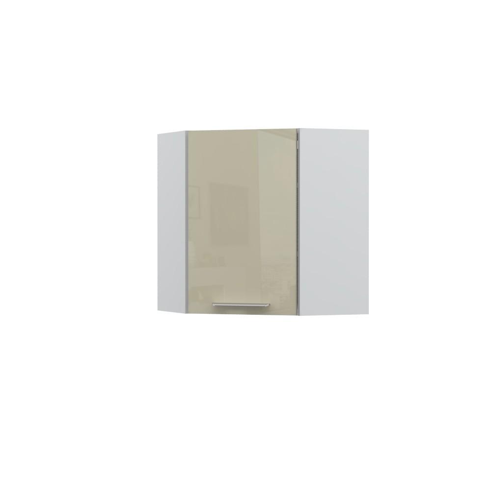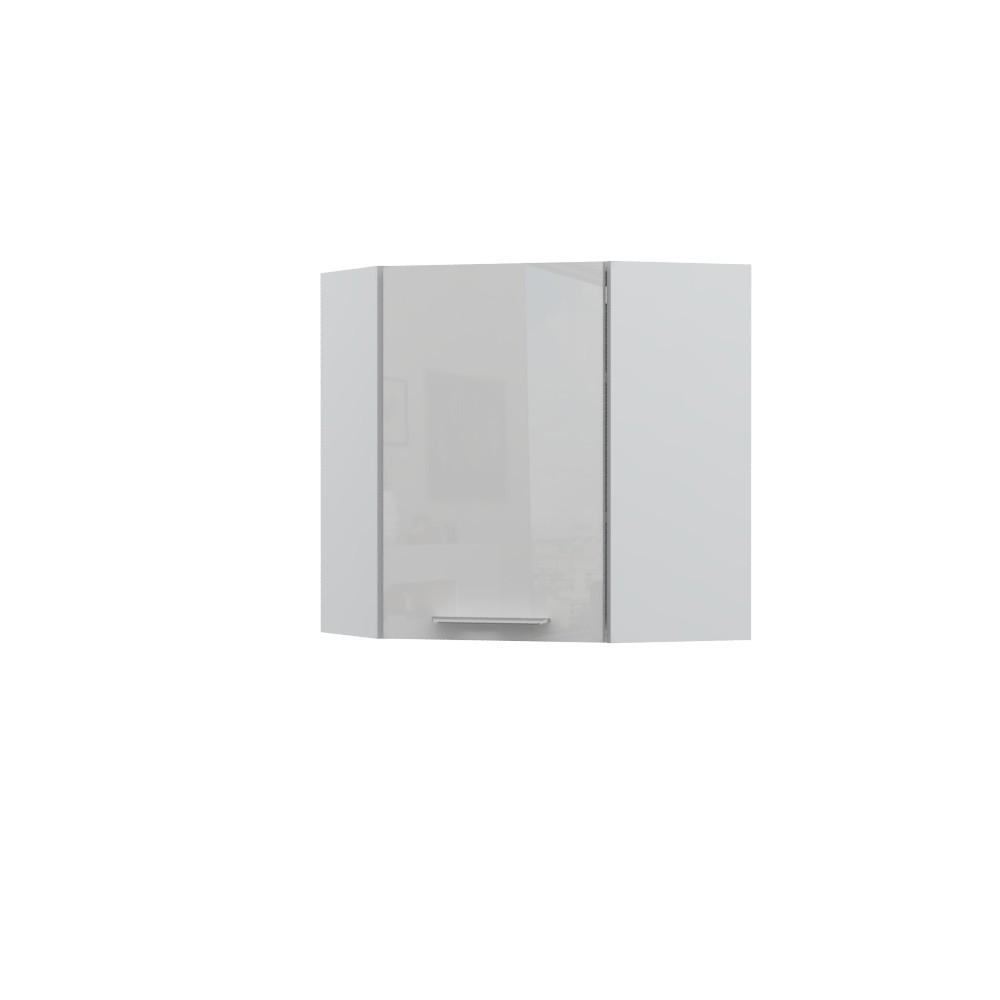 Ugaoni viseći element sa jednim krilom. Korpus elementa izrađen je od univera debljine 18mm, u belom drvo dekoru. Front je lakiran UV lakom u visokom sjaju u boji prema Vašem izboru iz ponuđene palete boja ovog modela. Ova napredna tehnologija lakiranja omogućuje četiri puta otporniju površinu fronta na fizička oštećenja i habanje u odnosu na standardno lakiranje. Korpus elementa je kantovan sa zadnje strane. Dva faha i šina za postavljanje i lakše nivelisanje elementa, uračunate su u cenu proizvoda. Mogućnost odabira više modela ručica u različitim dimenzijama, koje nisu uračunate u cenu elementa. Ukoliko želite, uz izbor dodatne opreme, bele bočne stranice možete zameniti bočnim panelima lakiranim UV lakom u boji prema Vašem izboru iz ponuđene palete boja ovog modela ili od univera u drvo dekoru Nebraska hrast. Istaknite završne bočne strane kuhinje ugradnjom dodatnih panela, debljine 16mm, lakiranih UV lakom u visokom sjaju u boji prema Vašem izboru iz ponuđene palete boja ovog modela ili ugradnjom dodatnih panela od univera debljine 25mm, dostupnim u drvo dekorima bele boje i Nebraska hrast.