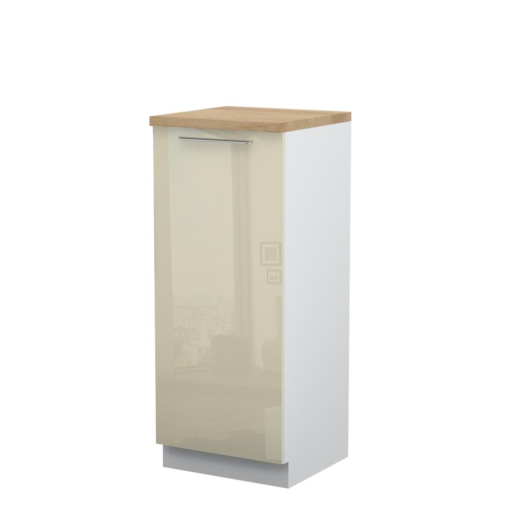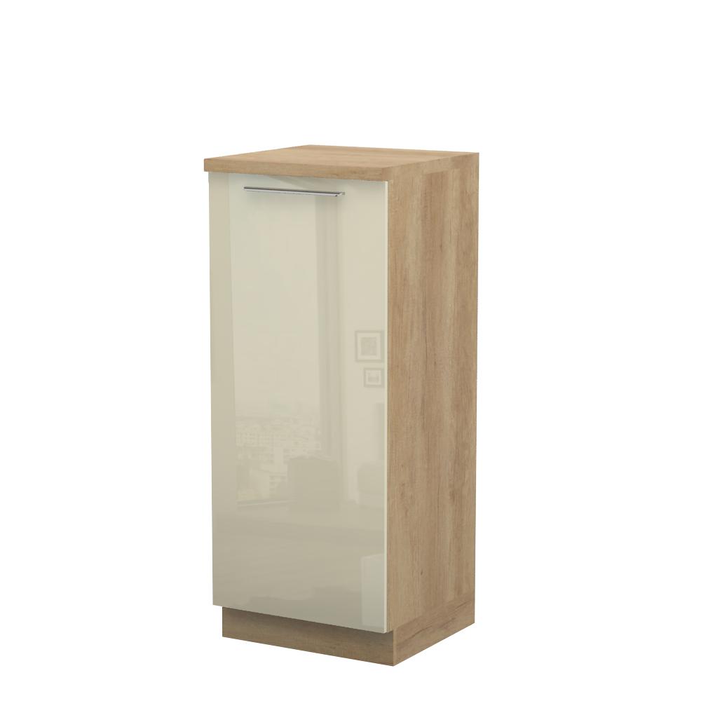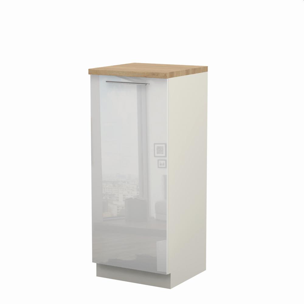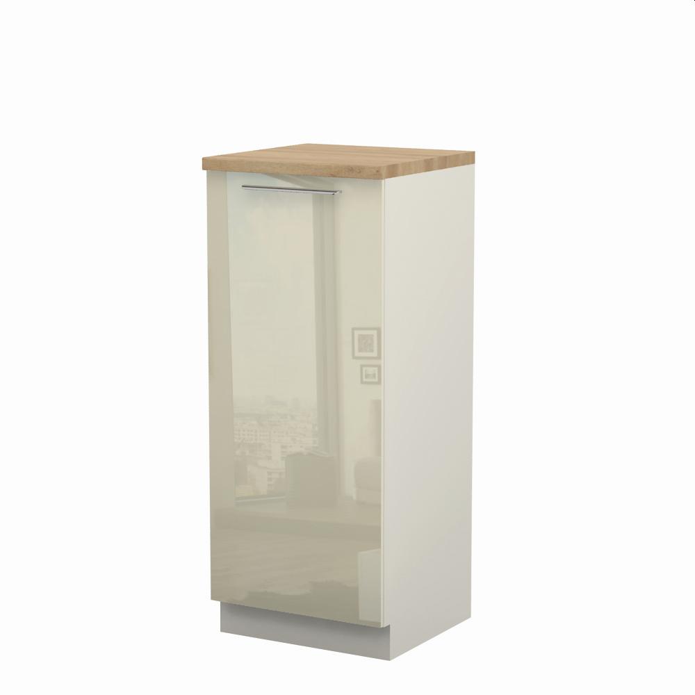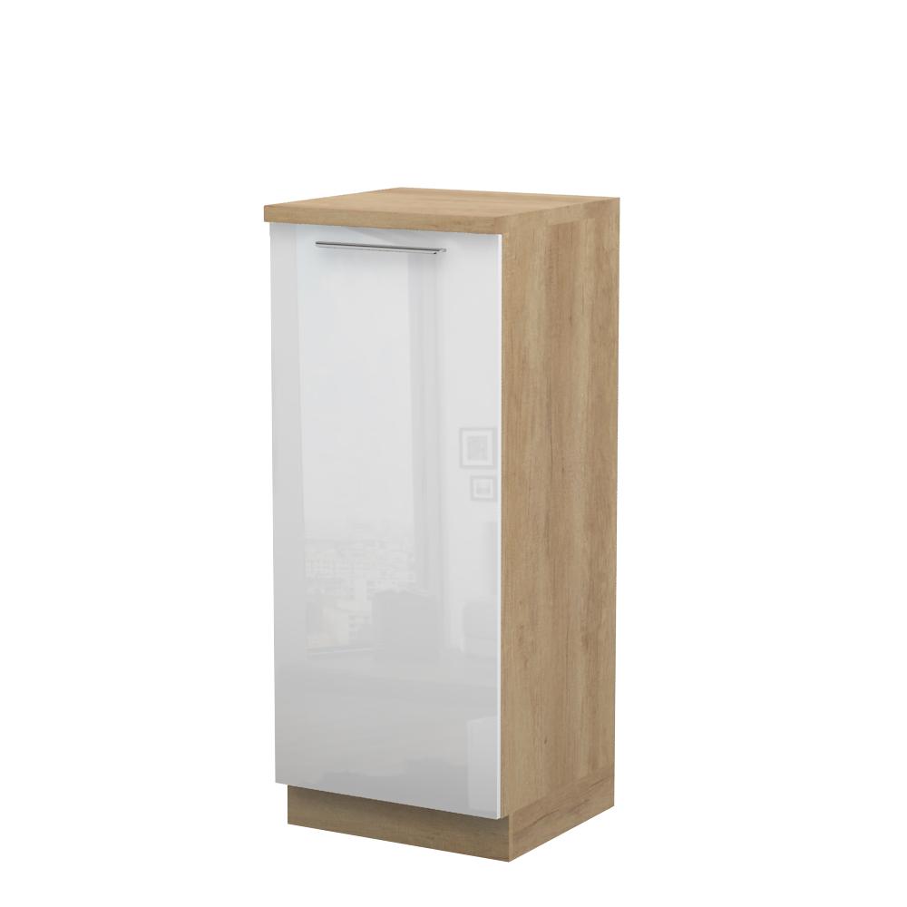 Kombinovani kuhinjski element, visine 148cm, predviđen za ugradnju frižidera. Korpus elementa je od univera debljine 18mm i može biti u drvo dekorima bele boje i Nebraska hrast. Front je lakiran UV lakom u visokom sjaju u boji prema Vašem izboru iz ponuđene palete boja ovog modela. Ova napredna tehnologija lakiranja omogućuje četiri puta otporniju površinu fronta na fizička oštećenja i habanje u odnosu na standardno lakiranje. Plafon elementa je radna ploča u jednom od sedam različitih dekora iz ponude. Korpus elementa je kantovan sa zadnje strane. Ima podesive nožice za nivelisanje na svim površinama.Soft-close šarke i sokla sa dihtung gumom uračunati su u cenu proizvoda. U ponudi su šest dekora sokle. Mogućnost odabira više modela ručica u različitim dimenzijama, koje nisu uračunate u cenu elementa. Istaknite završne bočne strane kuhinje ugradnjom dodatnih panela, debljine 16mm, lakiranih UV lakom u visokom sjaju u boji prema Vašem izboru iz ponuđene palete boja ovog modela ili ugradnjom dodatnih panela od univera debljine 25mm, dostupnim u drvo dekorima bele boje i Nebraska hrast.Radni vek frižidera može se produžiti boljom cirkulacijom vazduha unutar elementa, uz pomoć aluminijumske rešetke, koja se ugrađuje u soklu.
