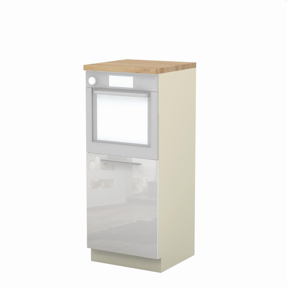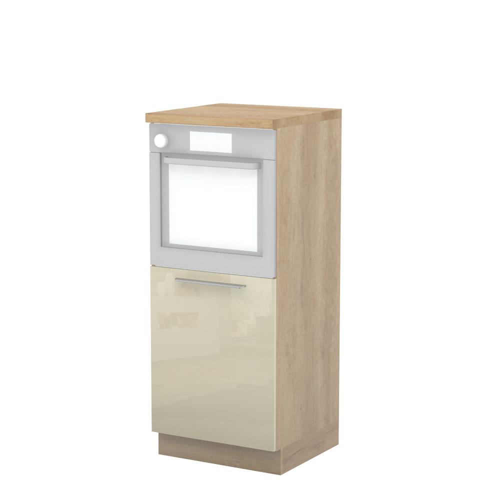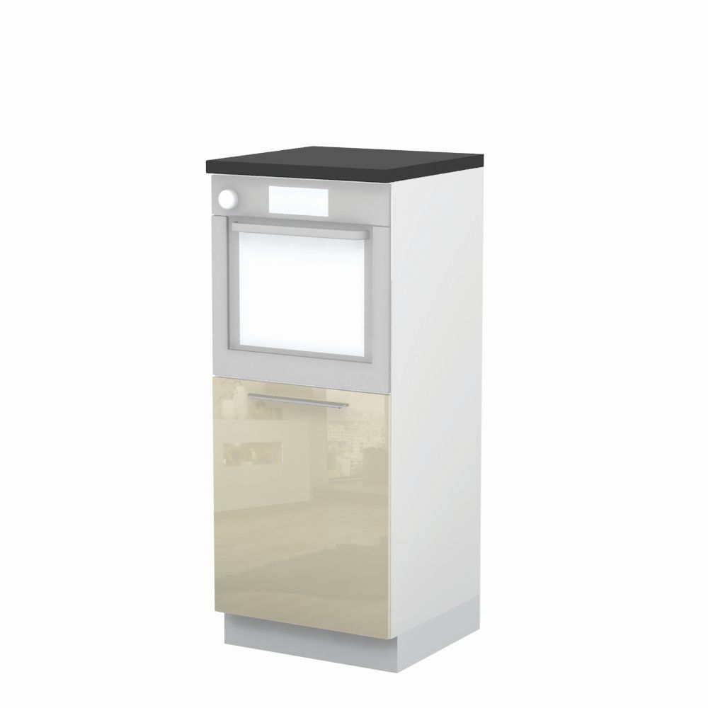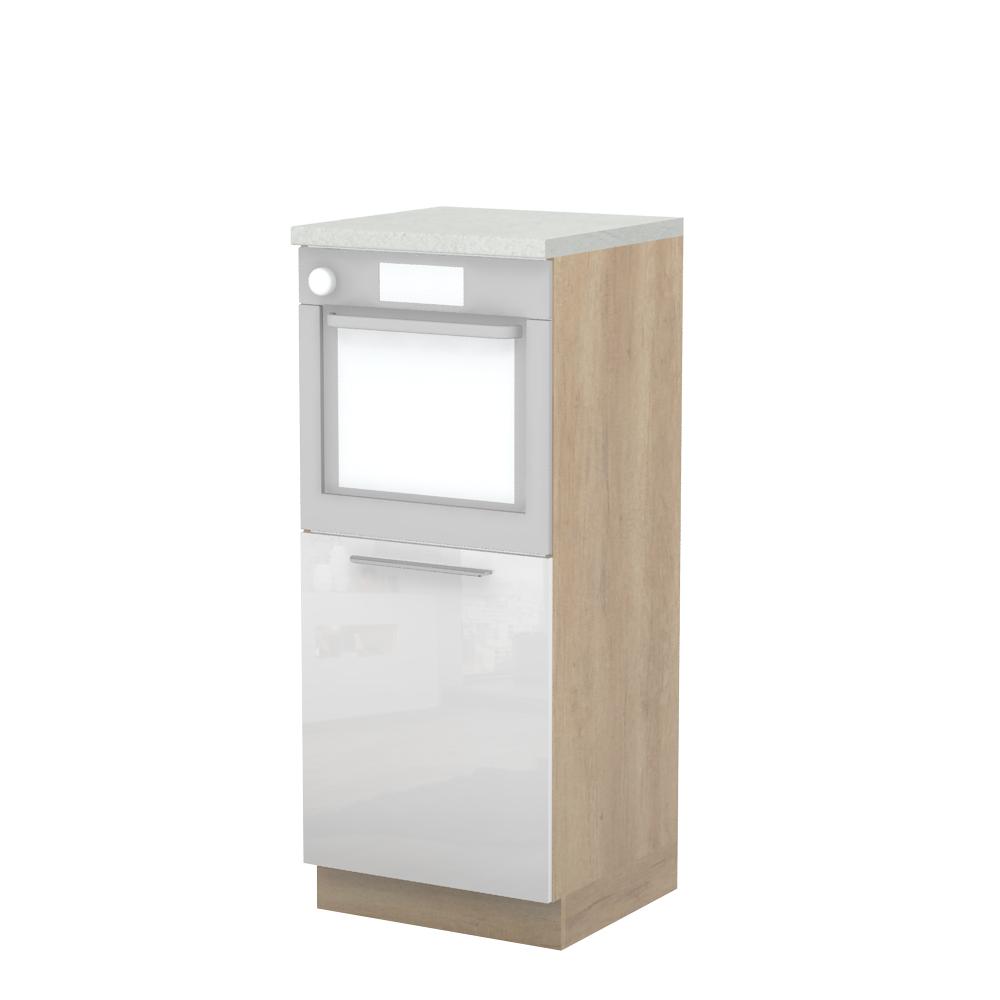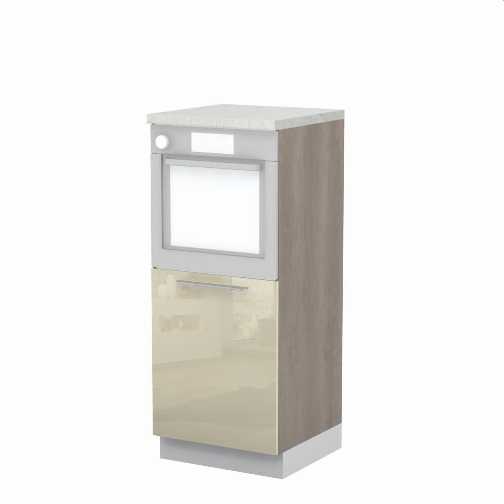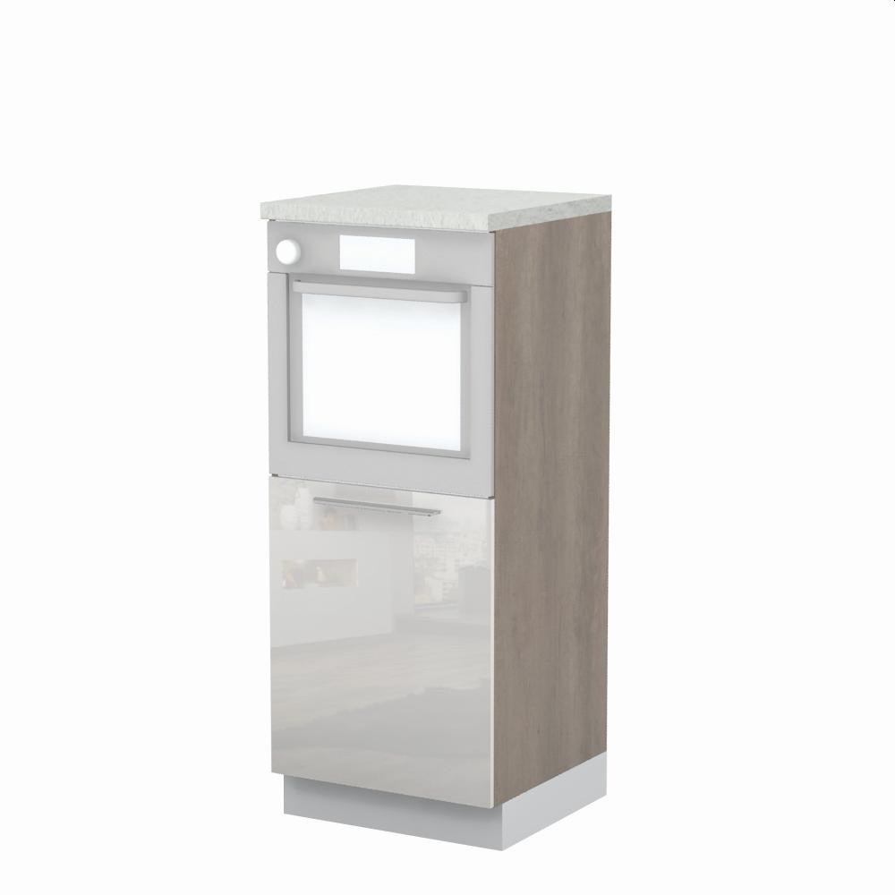 Kombinovani kuhinjski element, visine 148cm, predviđen za ugradnju rerne. Korpus elementa je od univera debljine 18mm, dok su bočne strane lakirane UV lakom u Kristaloj beloj, Bež boji u visokom sjaju ili drvo dekorima Nebraska i Tamna Nebraska u sjaju. Front je lakiran UV lakom u visokom sjaju u boji prema Vašem izboru iz ponuđene palete boja ovog modela. Ova napredna tehnologija lakiranja omogućuje četiri puta otporniju površinu fronta na fizička oštećenja i habanje u odnosu na standardno lakiranje. Plafon elementa je radna ploča u jednom od sedam različitih dekora iz ponude. Korpus elementa je kantovan sa zadnje strane. Ima jednu policu i podesive nožice za nivelisanje na svim površinama. Soft-close šarke i sokla sa dihtung gumom uračunati su u cenu proizvoda. U ponudi su šest dekora sokle. Mogućnost odabira više modela ručica u različitim dimenzijama, koje nisu uračunate u cenu elementa. Istaknite završne bočne strane kuhinje ugradnjom dodatnih panela, debljine 16mm, lakiranih UV lakom u visokom sjaju u boji prema Vašem izboru iz ponuđene palete boja ovog modela ili ugradnjom dodatnih panela od univera debljine 25mm, dostupnim u drvo dekorima bele boje i Nebraska hrast. Radni vek ugradne tehnike može se produžiti boljom cirkulacijom vazduha unutar elementa, uz pomoć aluminijumske rešetke, koja se ugrađuje u soklu.
