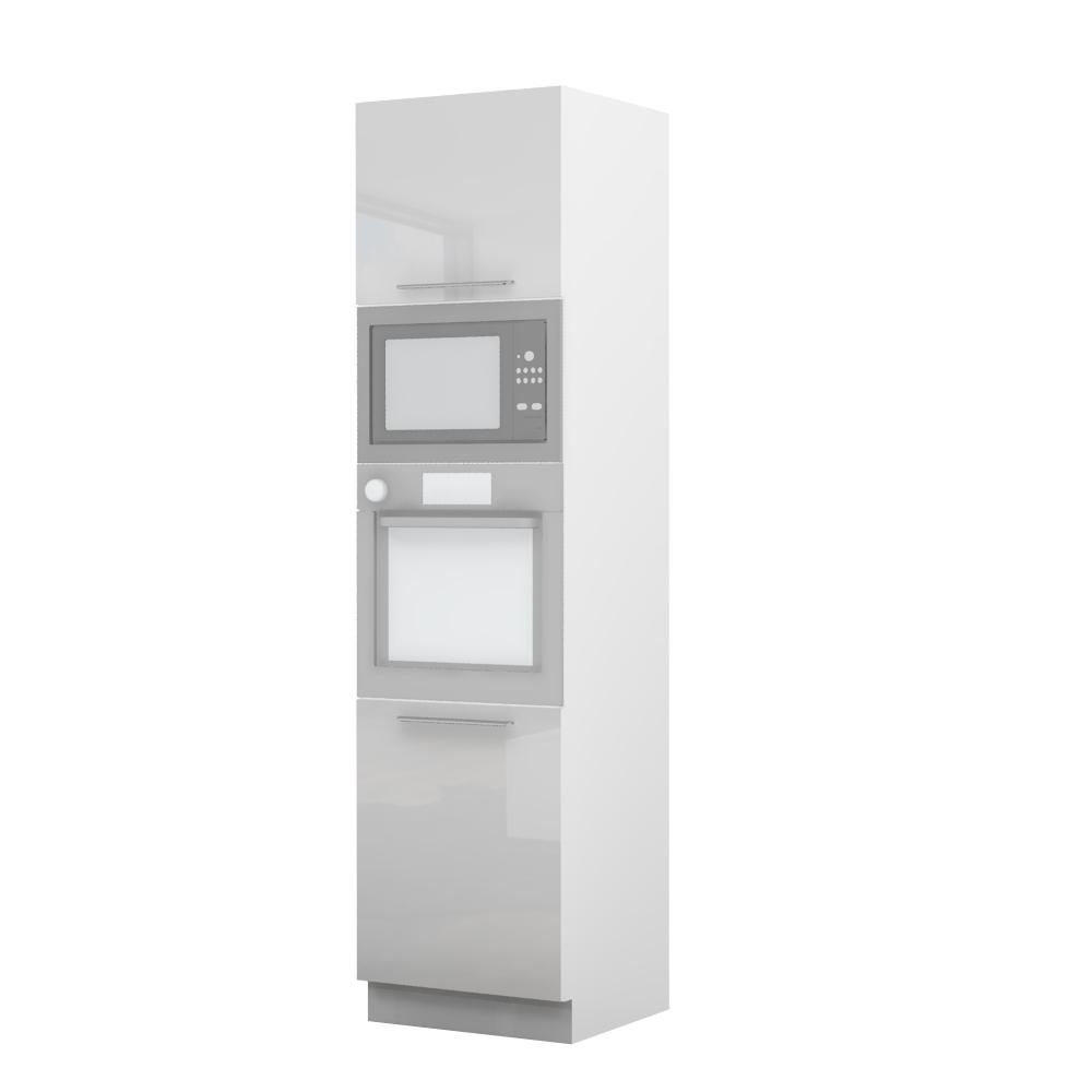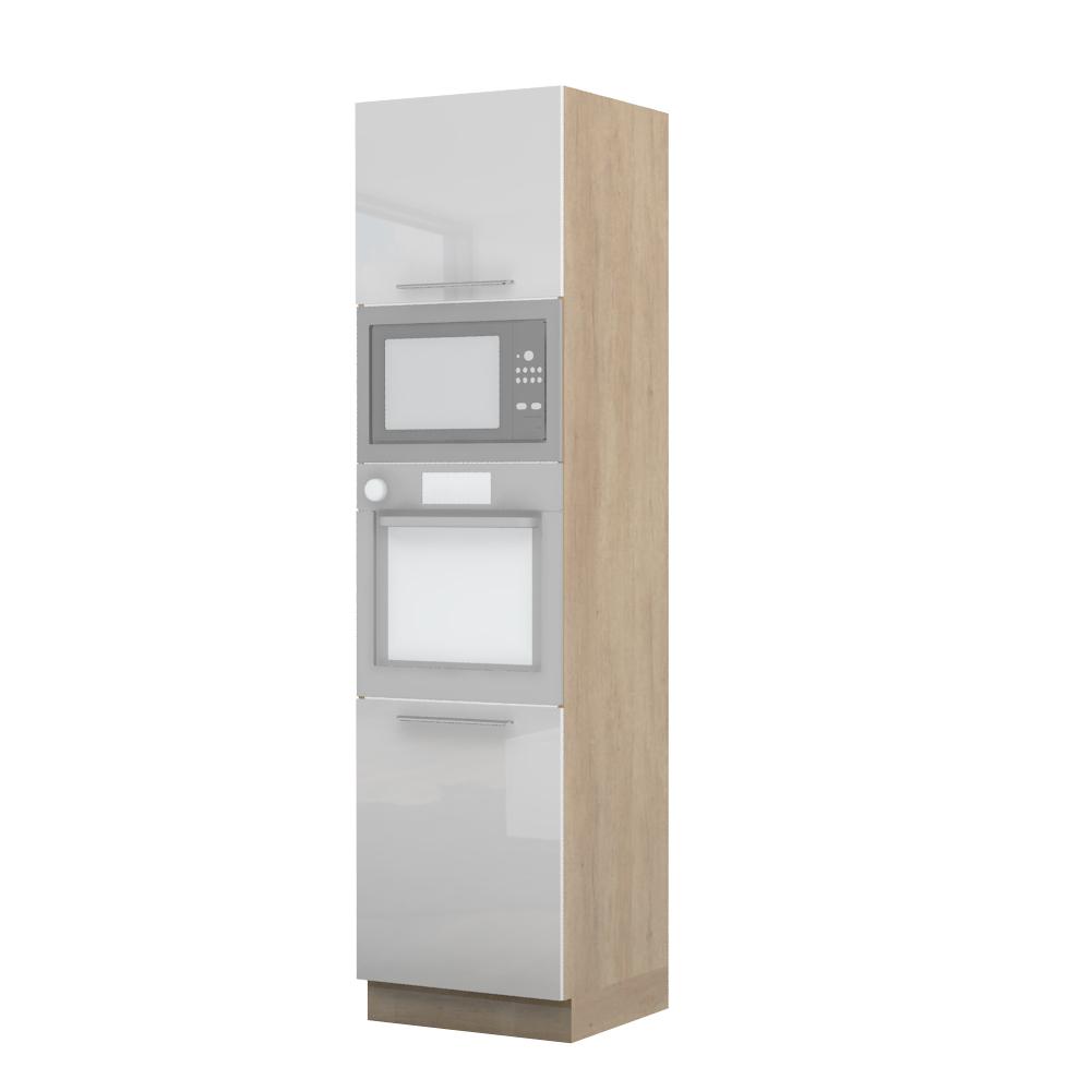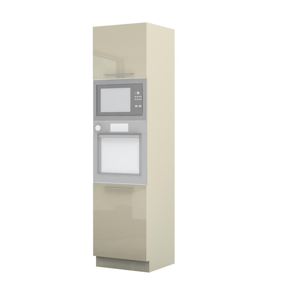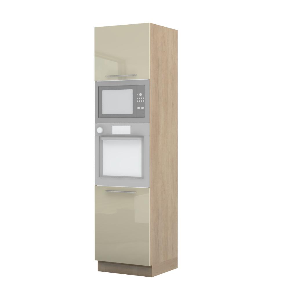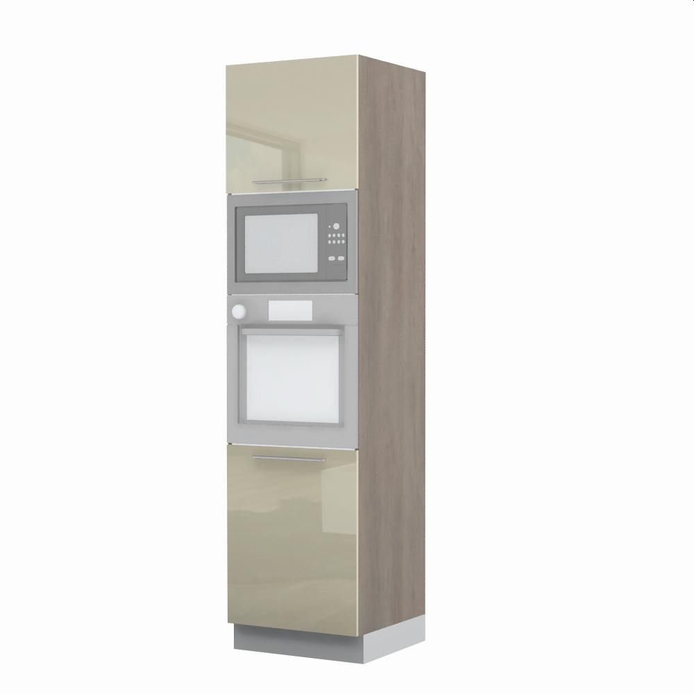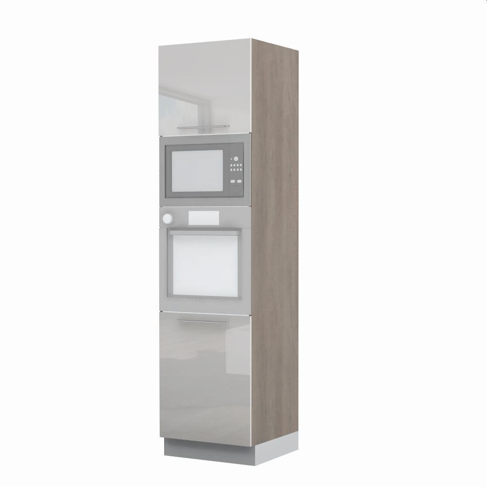 Kombinovani kuhinjski element, visine 235cm, predviđen za ugradnu rernu i mikrotalasnu pećnicu. Kompatibilan je sa kuhinjama sa visećim elementima visine 91cm (V9). Korpus elementa je od univera debljine 18mm u belom drvo dekoru, dok su bočne strane lakirane UV lakom u Kristaloj beloj, Bež boji u visokom sjaju ili drvo dekorima Nebraska hrast i Tamna Nebraska u sjaju. Front je lakiran UV lakom u visokom sjaju u boji prema Vašem izboru iz ponuđene palete boja ovog modela. Ova napredna tehnologija lakiranja omogućuje četiri puta otporniju površinu fronta na fizička oštećenja i habanje u odnosu na standardno lakiranje. Korpus elementa je kantovan sa zadnje strane. Ima jednu policu i podesive nožice za nivelisanje na svim površinama. Soft-close šarke i sokla sa dihtung gumom uračunati su u cenu proizvoda. U ponudi su šest dekora sokle. Mogućnost odabira više modela ručica u različitim dimenzijama, koje nisu uračunate u cenu elementa. Istaknite završne bočne strane kuhinje ugradnjom dodatnih panela, debljine 16mm, lakiranih UV lakom u visokom sjaju u boji prema Vašem izboru iz ponuđene palete boja ovog modela ili ugradnjom dodatnih panela od univera debljine 25mm, dostupnim u drvo dekorima bele boje i Nebraska hrast. Štelujući panel, kao dodatna oprema, može imati funkciju dodatne police. Radni vek ugradne tehnike može se produžiti boljom cirkulacijom vazduha unutar elementa, uz pomoć aluminijumske rešetke, koja se ugrađuje u soklu.