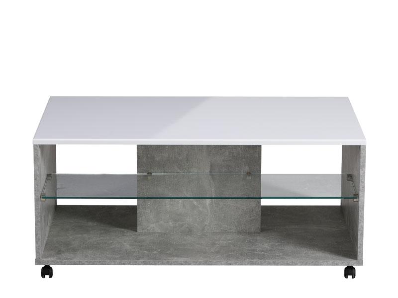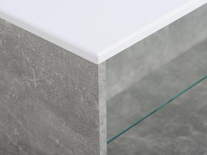 Klub stol BERT, u dekoru betona sa bijelom lak folijom, posjeduje praktične i estetske efektne staklene police ispod radne površine pogodne za odlaganje omiljenih knjiga ili časopisa. Klub stol BERT doprinosi savremenom tematskom konceptu uređenja dnevnog boravka.
