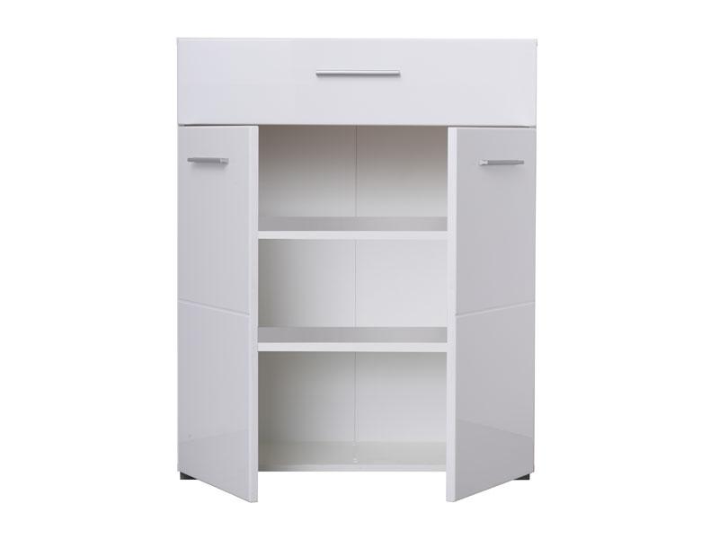 Komoda u opak bijelom dezenu sa bijelom lak folijom, posjeduje dvije praktične police i fioku za ekonomičnu organizaciju vašeg predsoblja. Može se kombinirati sa elementima iz kolekcije koji zaokružuju interijersku priču ulaza u vaš dom.