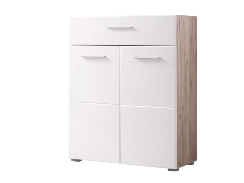 Komoda - u dezenu sivog hrasta i lak bijele folije, posjeduje dvije praktične police i fioku za ekonomičnu organizaciju vašeg predsoblja. Može se kombinirati sa elementima iz kolekcije koji zaokružuju interijersku priču ulaza u vaš dom.