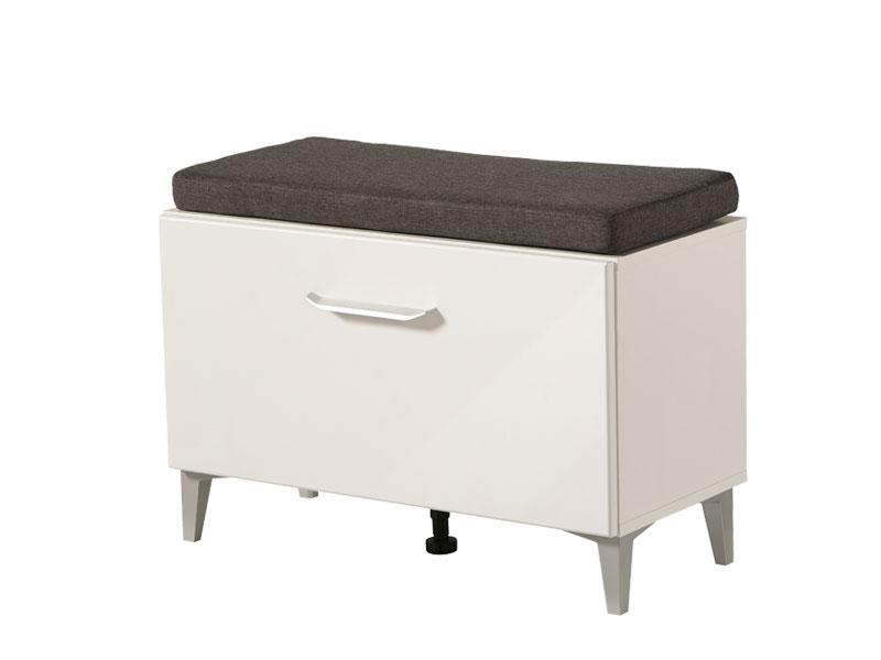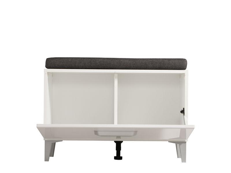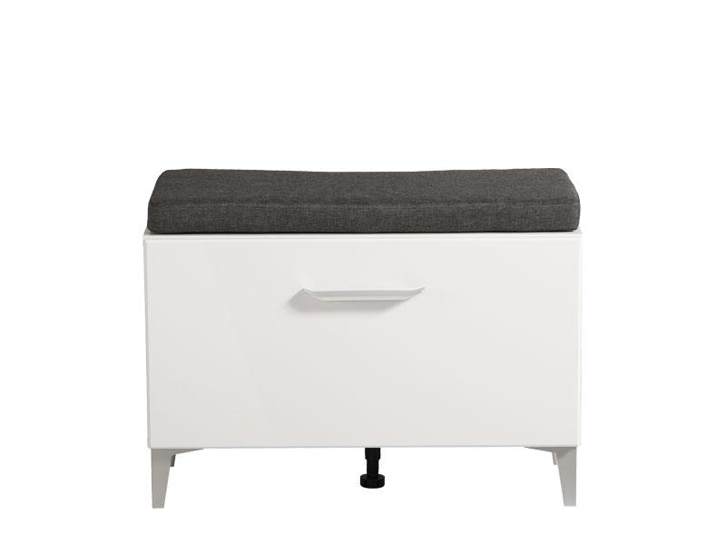 Element predsoblja u bijelom dezenu sa frontovima presvučenim bijelom 3D MDF folijom sa aplikacijom, dio je kolekcije koju odlikuje moderan dizajn i funkcionalno organiziran upotrebni prostor. Posjeduje praktičan zatvoreni segment za odlaganje obuće, kao i tapaciranu površinu za sjedenje.