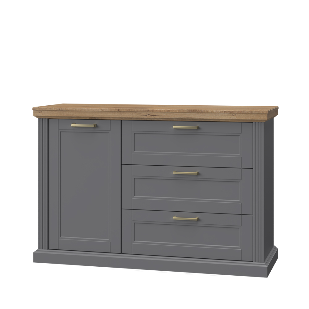 Moderna komoda iz kolekcije TARA sa jednim krilom i tri fioke.