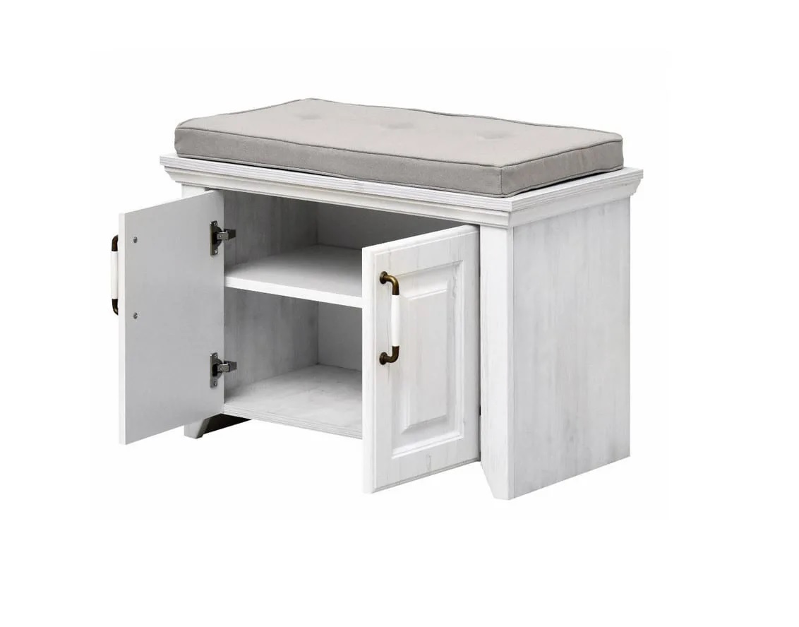 Predsoblje RUSTIK – Komoda sa jastučićem izrađena od univera 18mm i frontovima od medijapana. Predstavlja idealno riješenje za Vaše predsoblje. Komoda je sa prostranim prostorom podijeljenim policom. Predsoblje RUSTIK – Komodu sa jastučićem možete pored kućne upotrebe koristiti i u kancelariji. Element ima tapacirani dio za sjedenje prilikom obuvanja.