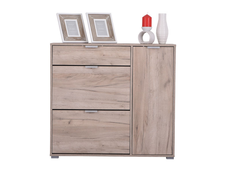 Cipelar u dezenu sivog hrasta, idealno je rešenje za uklapanje u prostore različitih dimenzija. Ovaj model posjeduje dva segmenta za odlaganje obuće, praktičnu fioku i desno pozicioniran dio sa dvije police.