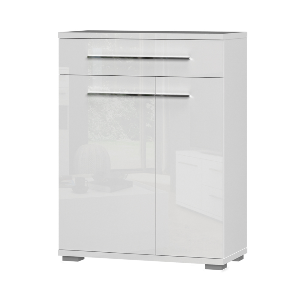 Cipelarnik za predsoblje iz kolekcije PIANO sa dva asimetrična krila i fiokom, modernog dizajna i elegantne forme.
