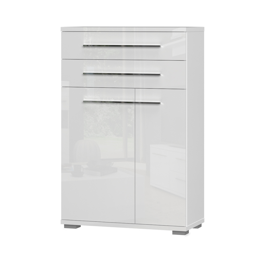 Cipelarnik za predsoblje iz kolekcije PIANO sa dva asimetrična krila i dvije fioke, modernog dizajna i elegantne forme.