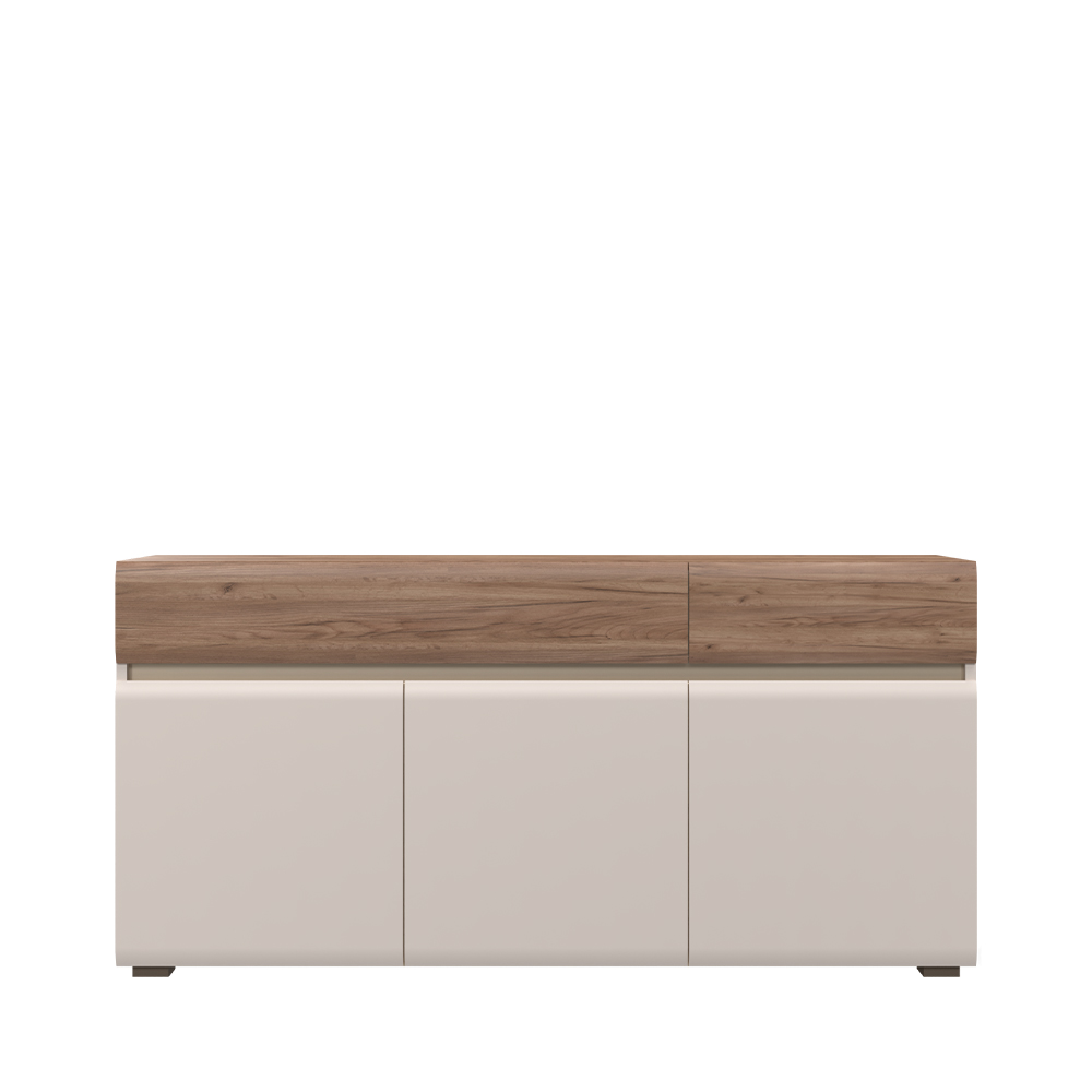 Komoda za spavaću sobu iz luksuzne kolekcije sa tri krila i dvije ladice, skladne i meke forme frontova. Sofisticiran komad namještaja za vašu spavaću sobu.