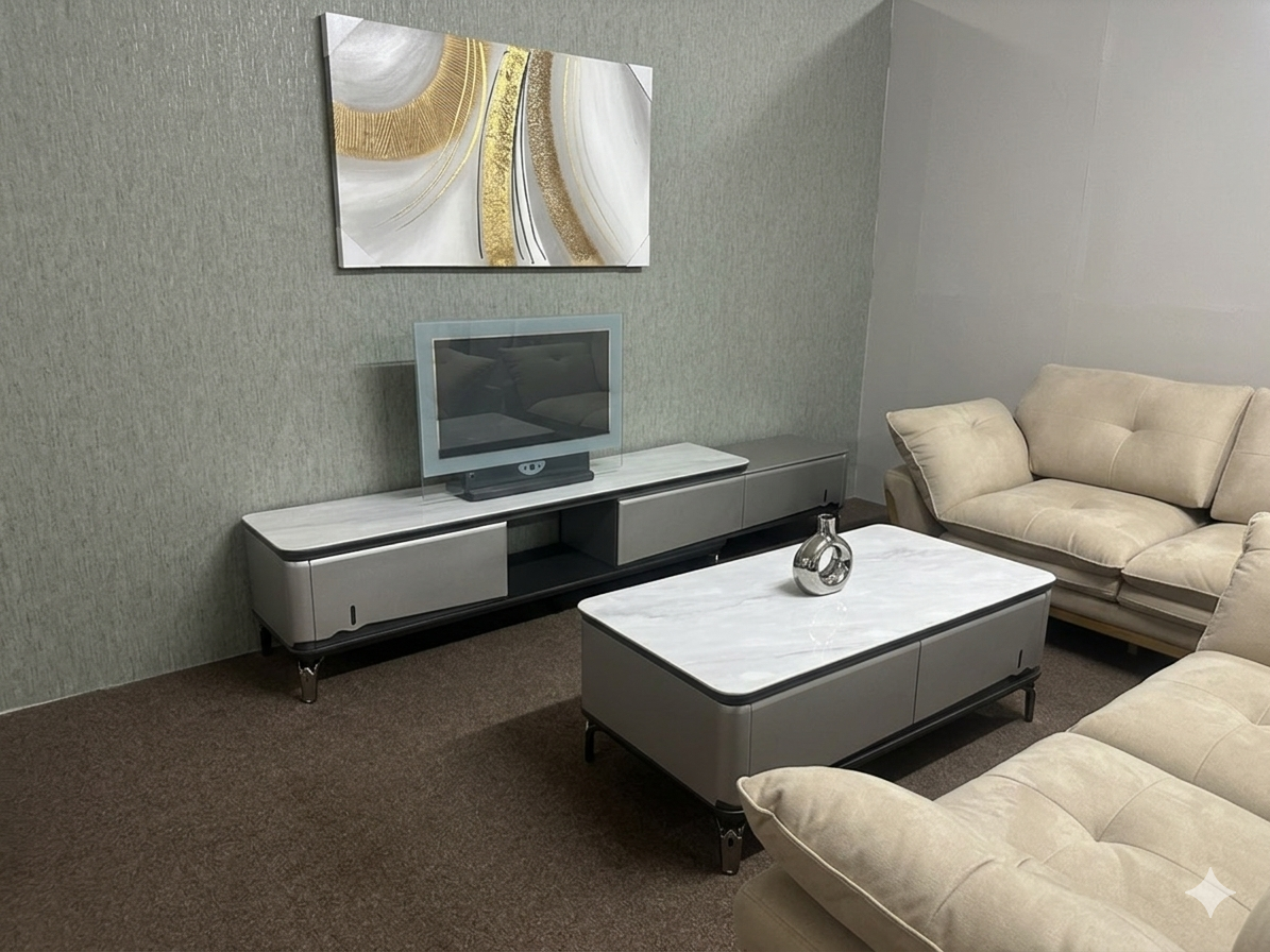 SET (klub stol + tv komoda) Dimenzije tv komode (šxdv): 207-260x34,5x49,5 cm Dimenzije klub stola (šxdxv): 130x68x50 cm