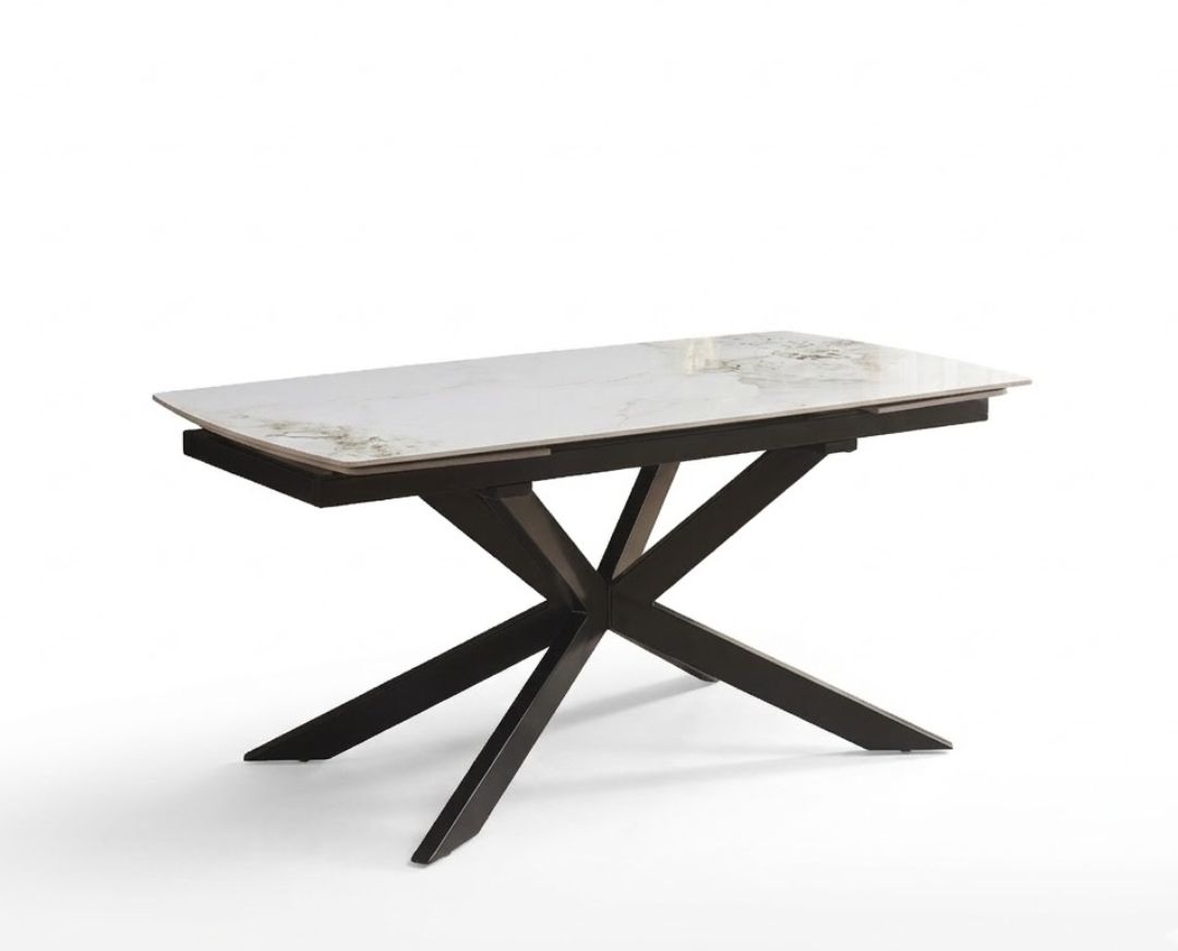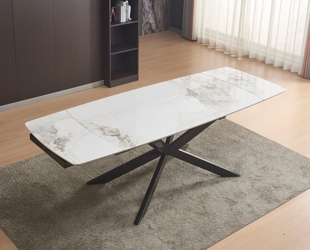 Dimenzije (šxdxv): 160-237x90x76 cm Boja: bijeli mramor, crne noge Materijali: ploča sinterovani kamen, metalni nogari