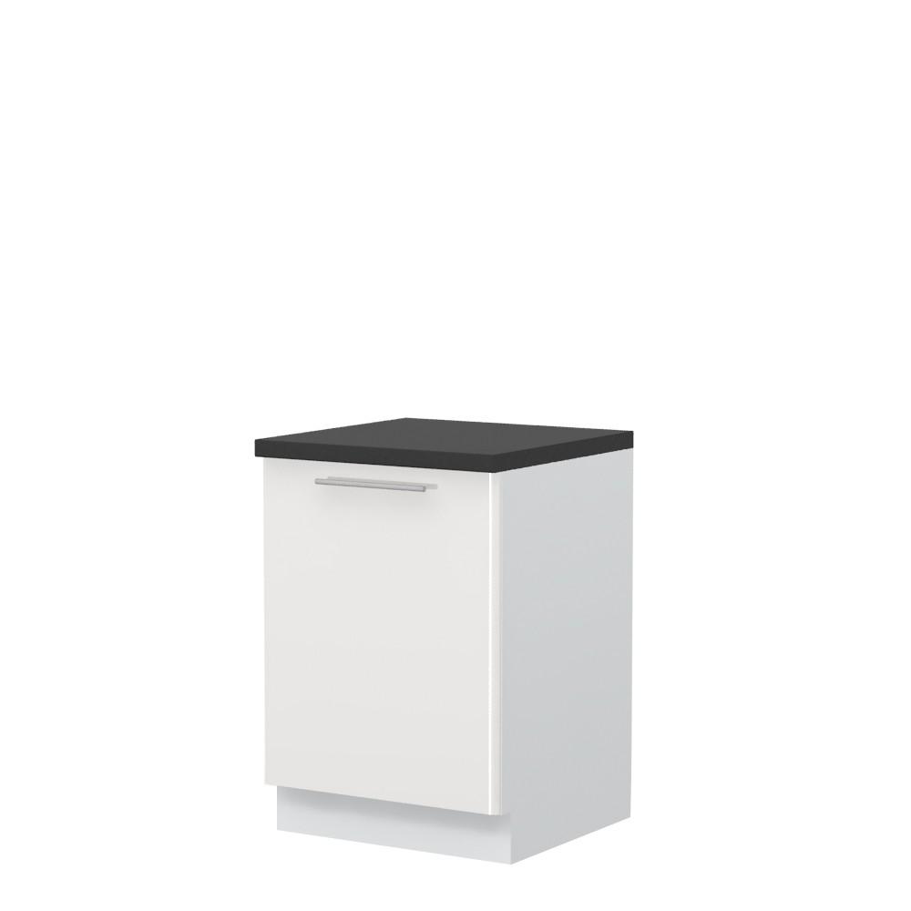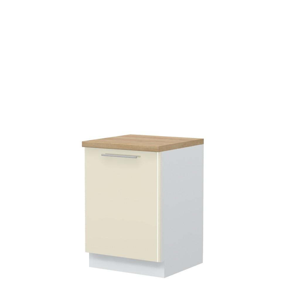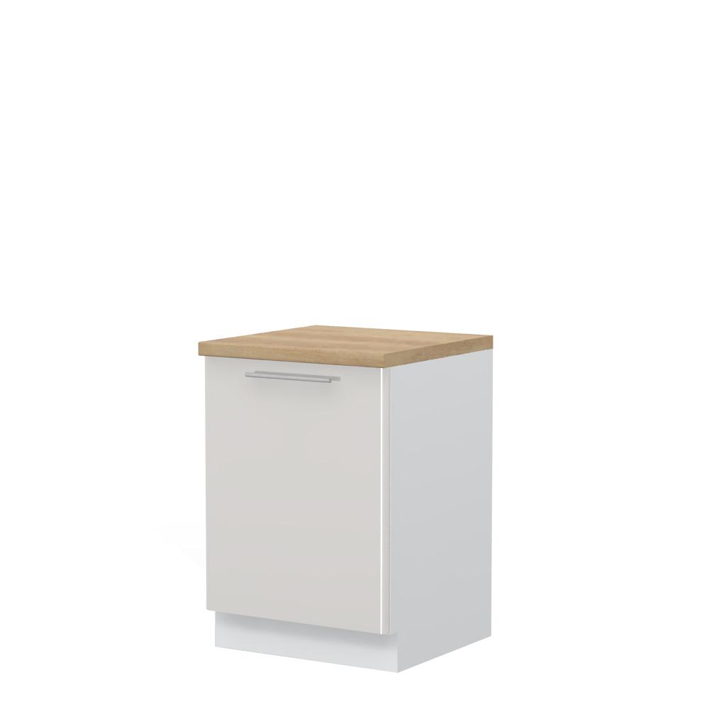 Radni kuhinjski element, širine 60cm, sa jednim krilom. Korpus elementa izrađen je od univera, debljine 18mm, u belom drvo dekoru. Front je od profilisanog medijapana u boji prema Vašem izboru iz ponuđene palete boja ovog modela. Korpus elementa je kantovan sa zadnje strane. Ima podesive nožice za nivelisanje na svim površinama. Radna ploča debljine 38mm, soft-close šarke, sokla sa dihtung gumom i jedan fah uračunati su u cenu proizvoda. U ponudi je sedam dekora radnih ploča i šest dekora sokle. Mogućnost odabira više modela ručica u različitim dimenzijama, koje nisu uračunate u cenu elementa. Obezbedite dugotrajnost radne ploče ugradnjom dihtung lajsne. Dihtung lajsna, dužine 4m, dostupna je u dekoru radne ploče. Ukoliko želite, uz izbor dodatne opreme, bele bočne stranice možete zameniti bočnim panelima lakiranim UV lakom u boji prema Vašem izboru iz ponuđene palete boja ovog modela ili od univera u drvo dekoru Polarni bor, Nebraska hrast i Slonova kost. Istaknite završne bočne strane kuhinje ugradnjom dodatnih panela, debljine 16mm, lakiranih UV lakom u visokom sjaju u boji prema Vašem izboru iz ponuđene palete boja ovog modela ili ugradnjom dodatnih panela od univera debljine 25mm, dostupnim u drvo dekorima bele boje, Polarni bor i Nebraska hrast.