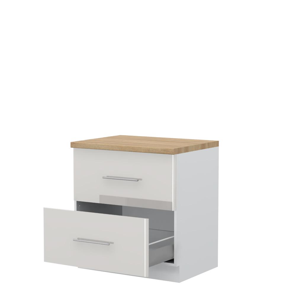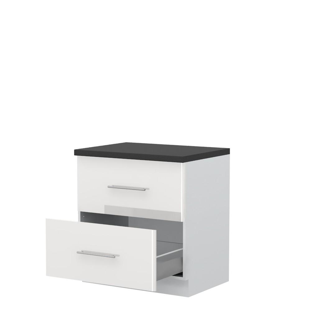 Radni kuhinjski element, širine 80cm, sa dve metal-box fioke. Metal-box fioka, nosivosti do 30kg, ima potpuno izvlačenje. Korpus fioke izrađen je u kombinaciji metala i univera debljine 16mm. Korpus elementa izrađen je od univera, debljine 18mm, u belom drvo dekoru. Front je od profilisanog medijapana u boji prema Vašem izboru iz ponuđene palete boja ovog modela. Korpus elementa je kantovan sa zadnje strane. Ima podesive nožice za nivelisanje na svim površinama. Radna ploča debljine 38mm, skriveni klizači sa usporivačima i sokla sa dihtung gumom uračunati su u cenu proizvoda. U ponudi je sedam dekora radnih ploča i šest dekora sokle. Mogućnost odabira više modela ručica u različitim dimenzijama, koje nisu uračunate u cenu elementa. Obezbedite dugotrajnost radne ploče ugradnjom dihtung lajsne. Dihtung lajsna, dužine 4m, dostupna je u dekoru radne ploče. Ukoliko želite, uz izbor dodatne opreme, bele bočne stranice možete zameniti bočnim panelima lakiranim UV lakom u boji prema Vašem izboru iz ponuđene palete boja ovog modela ili od univera u drvo dekoru Polarni bor, Nebraska hrast i Slonova kost. Istaknite završne bočne strane kuhinje ugradnjom dodatnih panela, debljine 16mm, lakiranih UV lakom u visokom sjaju u boji prema Vašem izboru iz ponuđene palete boja ovog modela ili ugradnjom dodatnih panela od univera debljine 25mm, dostupnim u drvo dekorima bele boje, Polarni bor i Nebraska hrast.