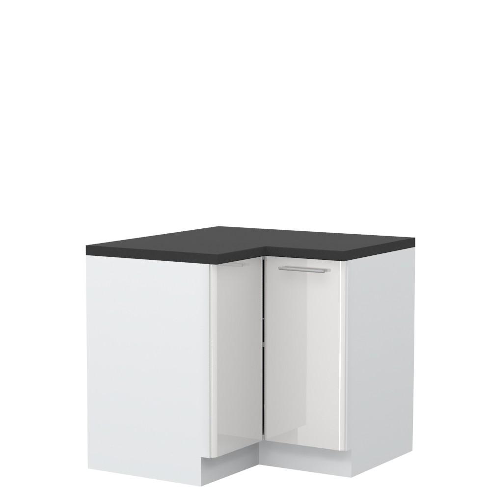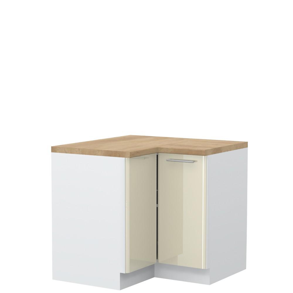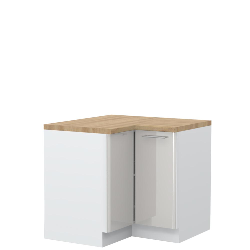 Radni ugaoni kuhinjski element, sa dva krila. Korpus elementa izrađen je od univera, debljine 18mm, u belom drvo dekoru. Front je od profilisanog medijapana u boji prema Vašem izboru iz ponuđene palete boja ovog modela. Korpus elementa je kantovan sa zadnje strane. Ima podesive nožice za nivelisanje na svim površinama. Radna ploča debljine 38mm, sokla sa dihtung gumom i jedan fah uračunati su u cenu proizvoda. U ponudi je sedam dekora radnih ploča i šest dekora sokle. Umesto jednog faha, može se dokupiti žičani ugaoni element, Z-UG. Mogućnost odabira više modela ručica u različitim dimenzijama, koje nisu uračunate u cenu elementa. Obezbedite dugotrajnost radne ploče ugradnjom dihtung lajsne. Dihtung lajsna, dužine 4m, dostupna je u dekoru radne ploče. Ukoliko želite, uz izbor dodatne opreme, bele bočne stranice možete zameniti bočnim panelima lakiranim UV lakom u boji prema Vašem izboru iz ponuđene palete boja ovog modela ili od univera u drvo dekoru Polarni bor, Nebraska hrast i Slonova kost. Istaknite završne bočne strane kuhinje ugradnjom dodatnih panela, debljine 16mm, lakiranih UV lakom u visokom sjaju u boji prema Vašem izboru iz ponuđene palete boja ovog modela ili ugradnjom dodatnih panela od univera debljine 25mm, dostupnim u drvo dekorima bele boje, Polarni bor i Nebraska hrast.