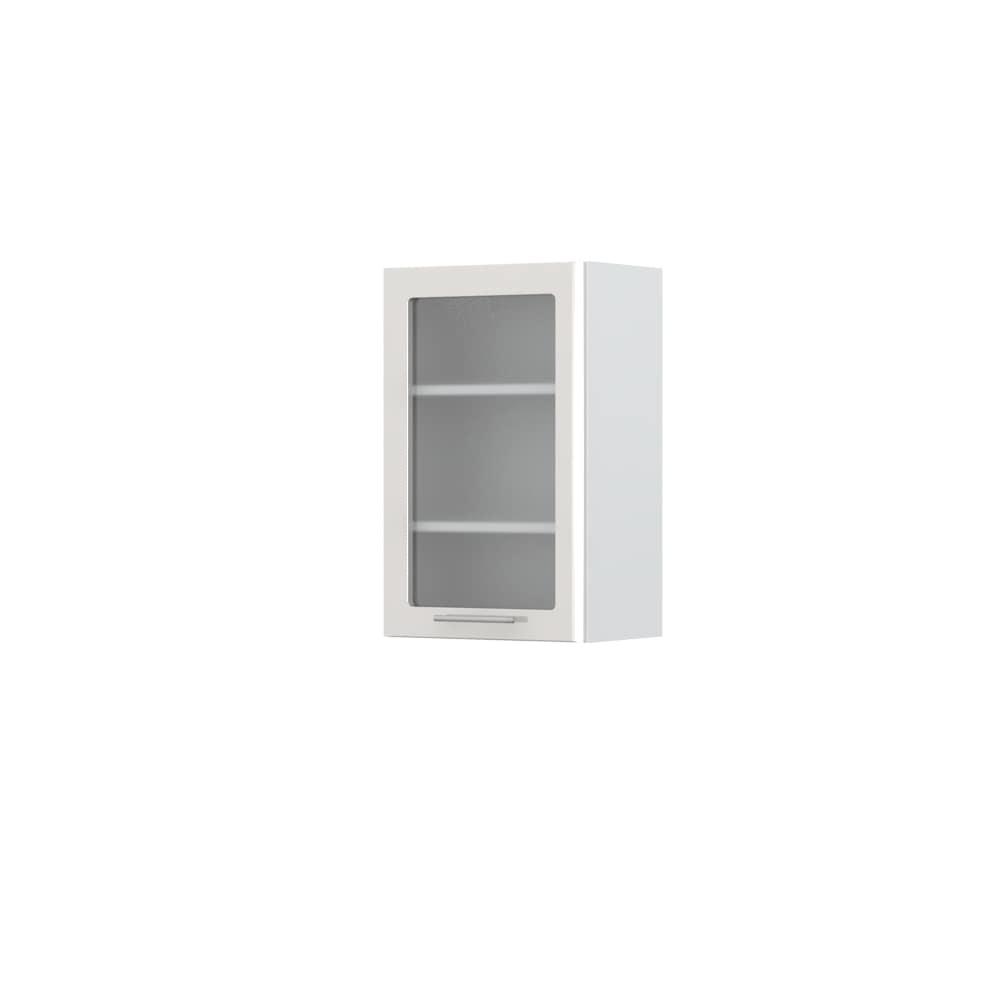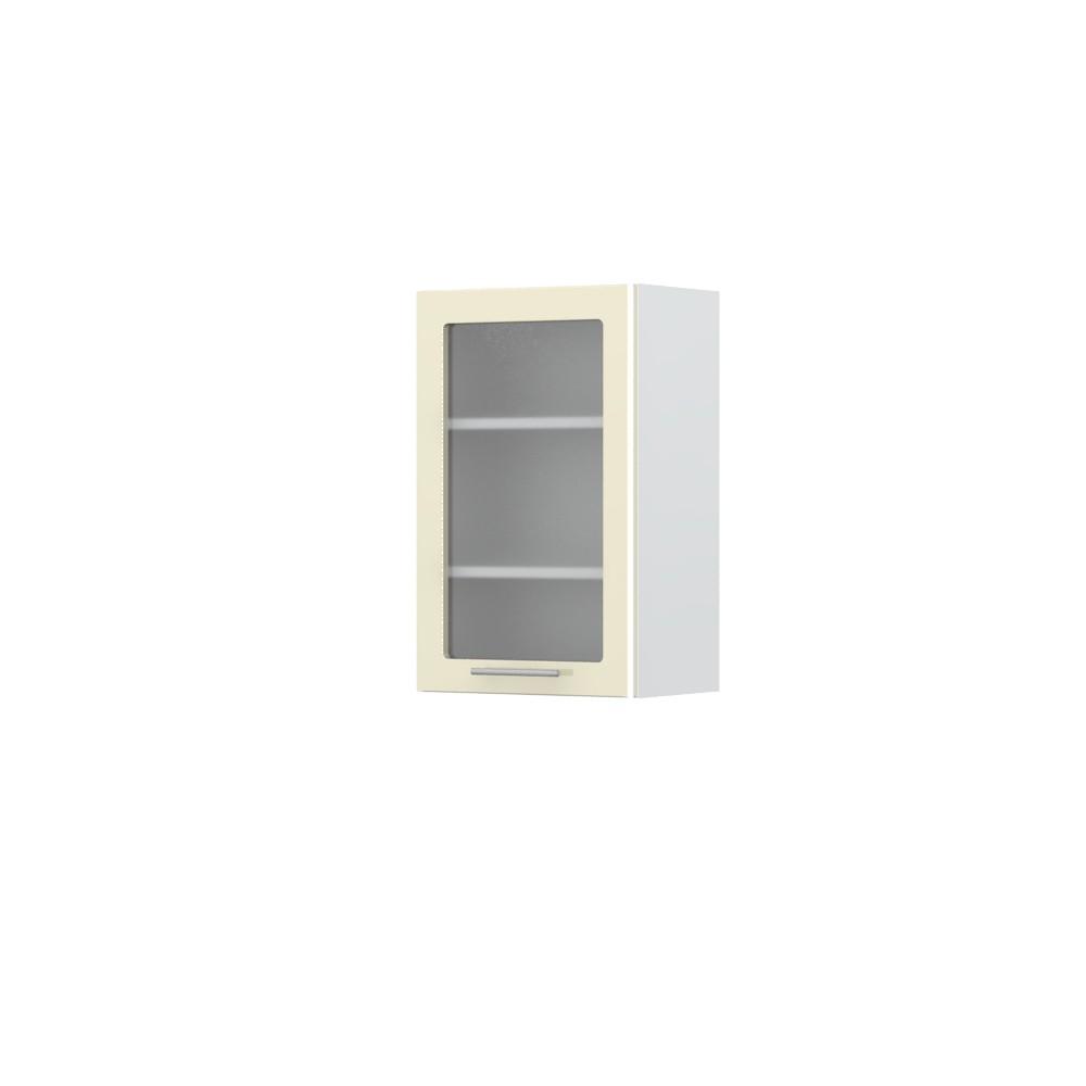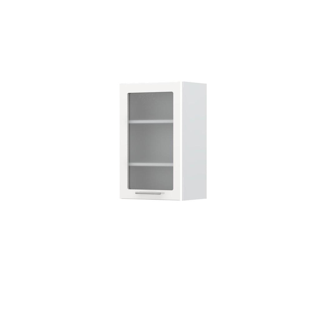 Viseći kuhinjski element, širine 45cm, sa jednim krilom sa kaljenim staklom debljine 4mm. Korpus elementa izrađen je od univera debljine 18mm, u belom drvo dekoru. Front je od profilisanog medijapana u boji prema Vašem izboru iz ponuđene palete boja ovog modela. Dubina elementa je 32cm. Korpus elementa je kantovan sa zadnje strane. Soft-close šarke, dva faha i šina za postavljanje i lakše nivelisanje elementa, uračunate su u cenu proizvoda. Mogućnost odabira više modela ručica u različitim dimenzijama, koje nisu uračunate u cenu elementa. Ukoliko želite, uz izbor dodatne opreme, bele bočne stranice možete zameniti bočnim panelima lakiranim UV lakom u boji prema Vašem izboru iz ponuđene palete boja ovog modela ili od univera u drvo dekoru Polarni bor, Nebraska hrast i Slonova kost. Istaknite završne bočne strane kuhinje ugradnjom dodatnih panela, debljine 16mm, lakiranih UV lakom u visokom sjaju u boji prema Vašem izboru iz ponuđene palete boja ovog modela ili ugradnjom dodatnih panela od univera debljine 25mm, dostupnim u drvo dekorima bele boje, Polarni bor i Nebraska hrast. Postignite efektan izgled kuhinje postavljanjem završnih lajsni debljine 25mm, od univera u ponuđenim drvo dekorima ili od medijapana u boji fronta Vaše kuhinje.