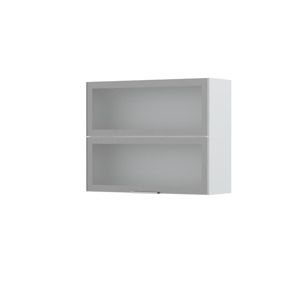 Viseći kuhinjski element, širine 90cm, sa dva krila sa kaljenim staklom debljine 4mm u ramu od poliranog aluminijuma sa pripadajućom ručicom koja je uključena u cenu proizvoda. Korpus elementa izrađen je od univera debljine 18mm, u belom drvo dekoru. Dubina elementa je 32cm. Korpus elementa je kantovan sa zadnje strane. Kesseböhmer, preklopni mehanizam nemačkog proizvođača pruža komfor pri rukovanju, omogućuje dobar pristup unutrašnjosti elementa i ima lako i tiho zatvaranje. U cenu proizvoda uračunata su dva faha i šina za postavljanje i lakše nivelisanje elementa. Ukoliko želite, uz izbor dodatne opreme, bele bočne stranice možete zameniti bočnim panelima lakiranim UV lakom u boji prema Vašem izboru iz ponuđene palete boja ovog modela ili od univera u drvo dekoru Nebraska hrast. Istaknite završne bočne strane kuhinje ugradnjom dodatnih panela, debljine 16mm, lakiranih UV lakom u visokom sjaju u boji prema Vašem izboru iz ponuđene palete boja ovog modela ili ugradnjom dodatnih panela od univera debljine 25mm, dostupnim u drvo dekorima bele boje i Nebraska hrast.