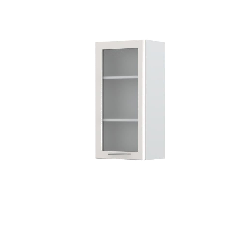 Viseći kuhinjski element, širine 45cm, sa jednim krilom sa kaljenim staklom debljine 4mm. Korpus elementa izrađen je od univera debljine 18mm, u belom drvo dekoru. Front je od profilisanog medijapana u boji prema Vašem izboru iz ponuđene palete boja ovog modela. Dubina elementa je 32cm. Korpus elementa je kantovan sa zadnje strane. Soft-close šarke, dva faha i šina za postavljanje i lakše nivelisanje elementa, uračunate su u cenu proizvoda. Mogućnost odabira više modela ručica u različitim dimenzijama, koje nisu uračunate u cenu elementa. Ukoliko želite, uz izbor dodatne opreme, bele bočne stranice možete zameniti bočnim panelima lakiranim UV lakom u boji prema Vašem izboru iz ponuđene palete boja ovog modela ili od univera u drvo dekoru Polarni bor, Nebraska hrast i Slonova kost. Istaknite završne bočne strane kuhinje ugradnjom dodatnih panela, debljine 16mm, lakiranih UV lakom u visokom sjaju u boji prema Vašem izboru iz ponuđene palete boja ovog modela ili ugradnjom dodatnih panela od univera debljine 25mm, dostupnim u drvo dekorima bele boje, Polarni bor i Nebraska hrast. Postignite efektan izgled kuhinje postavljanjem završnih lajsni debljine 25mm, od univera u ponuđenim drvo dekorima ili od medijapana u boji fronta Vaše kuhinje.