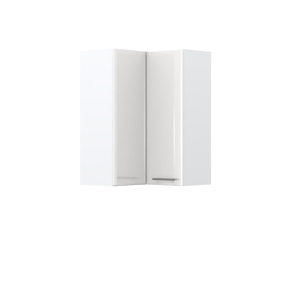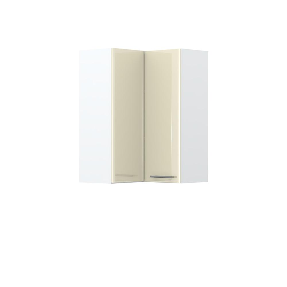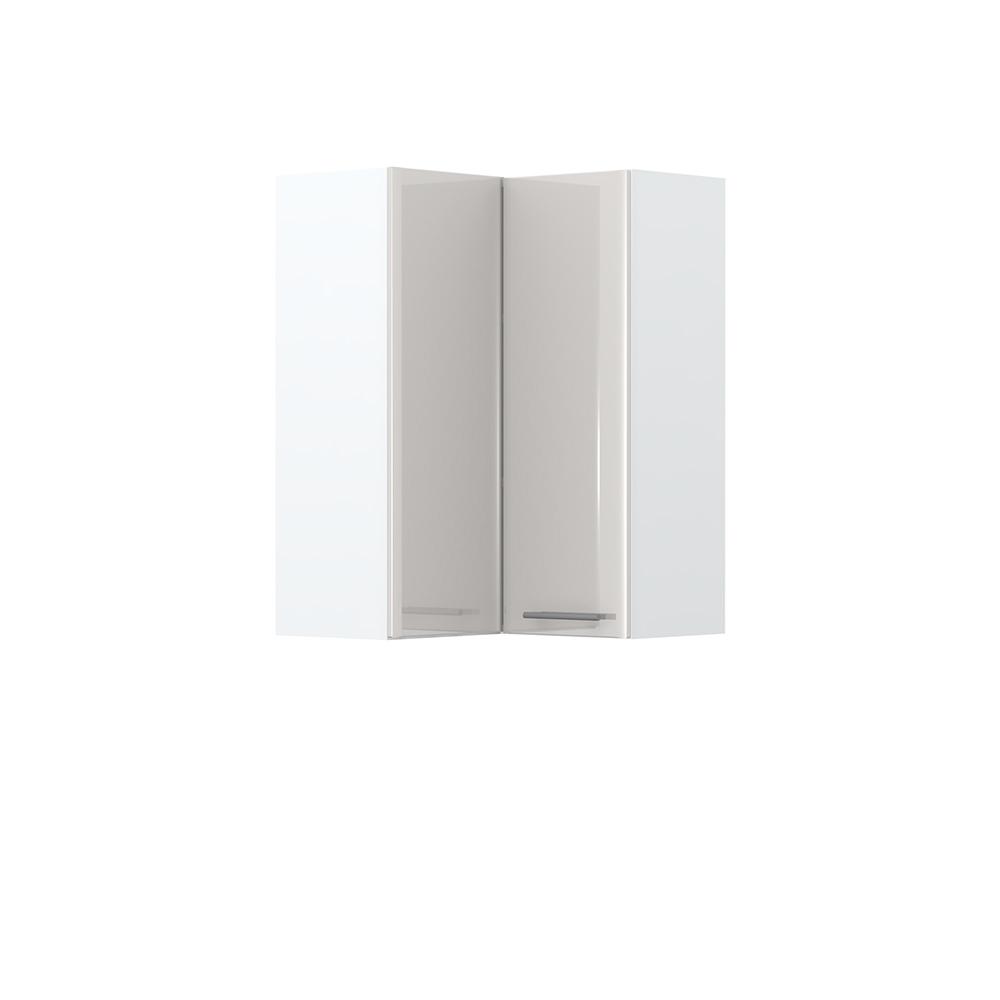 Ugaoni viseći element sa jednim krilom. Korpus elementa izrađen je od univera debljine 18mm, u belom drvo dekoru. Front je od profilisanog medijapana u boji prema Vašem izboru iz ponuđene palete boja ovog modela. Korpus elementa je kantovan sa zadnje strane. Dva faha i šina za postavljanje i lakše nivelisanje elementa, uračunati su u cenu proizvoda. Mogućnost odabira više modela ručica u različitim dimenzijama, koje nisu uračunate u cenu elementa. Ukoliko želite, uz izbor dodatne opreme, bele bočne stranice možete zameniti bočnim panelima lakiranim UV lakom u boji prema Vašem izboru iz ponuđene palete boja ovog modela ili od univera u drvo dekoru Polarni bor, Nebraska hrast i Slonova kost. Istaknite završne bočne strane kuhinje ugradnjom dodatnih panela, debljine 16mm, lakiranih UV lakom u visokom sjaju u boji prema Vašem izboru iz ponuđene palete boja ovog modela ili ugradnjom dodatnih panela od univera debljine 25mm, dostupnim u drvo dekorima bele boje, Polarni bor i Nebraska hrast. Postignite efektan izgled kuhinje postavljanjem završnih lajsni debljine 25mm, od univera u ponuđenim drvo dekorima ili od medijapana u boji fronta Vaše kuhinje.
