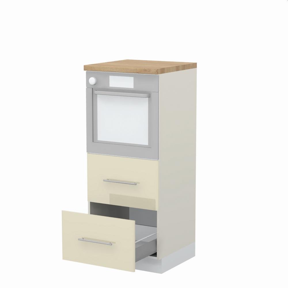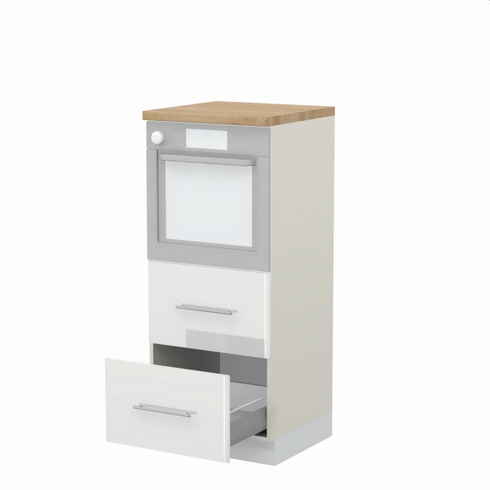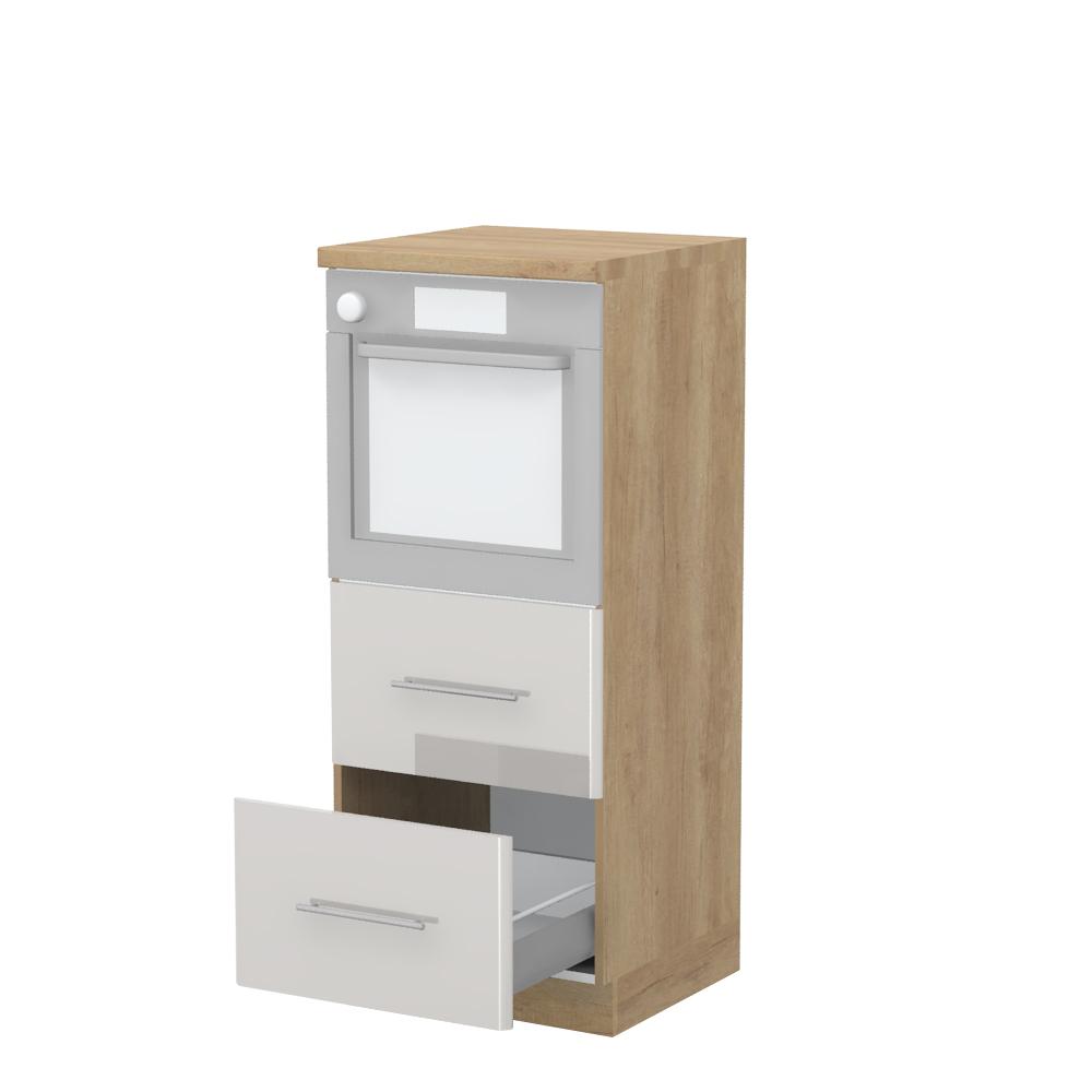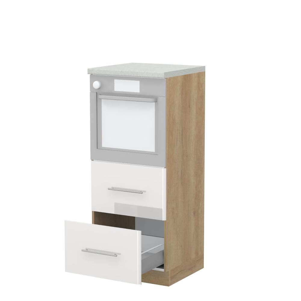 Kombinovani kuhinjski element, visine 148cm sa dve metal-box fioke, predviđen za ugradnju rerne. Metal-box fioka, nosivosti do 30kg, ima potpuno izvlačenje. Korpus fioke izrađen je u kombinaciji metala i univera debljine 16mm. Korpus elementa je od univera debljine 18mm i može biti u drvo dekorima bele boje, Slonova kost i Nebraska hrast. Front je od profilisanog medijapana u boji prema Vašem izboru iz ponuđene palete boja ovog modela. Plafon elementa je radna ploča u jednom od sedam različitih dekora iz ponude. Korpus elementa je kantovan sa zadnje strane. Element ima podesive nožice za nivelisanje na svim površinama. Soft-close šarke i sokla sa dihtung gumom uračunati su u cenu proizvoda. U ponudi su šest dekora sokle. Mogućnost odabira više modela ručica u različitim dimenzijama, koje nisu uračunate u cenu elementa. Istaknite završne bočne strane kuhinje ugradnjom dodatnih panela, debljine 16mm, lakiranih UV lakom u visokom sjaju u boji prema Vašem izboru iz ponuđene palete boja ovog modela ili ugradnjom dodatnih panela od univera debljine 25mm, dostupnim u drvo dekorima bele boje i Nebraska hrast. Radni vek ugradne tehnike može se produžiti boljom cirkulacijom vazduha unutar elementa, uz pomoć aluminijumske rešetke, koja se ugrađuje u soklu.
