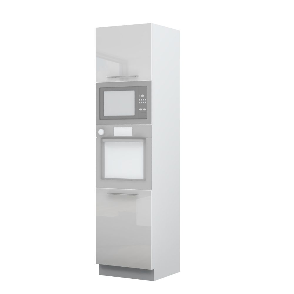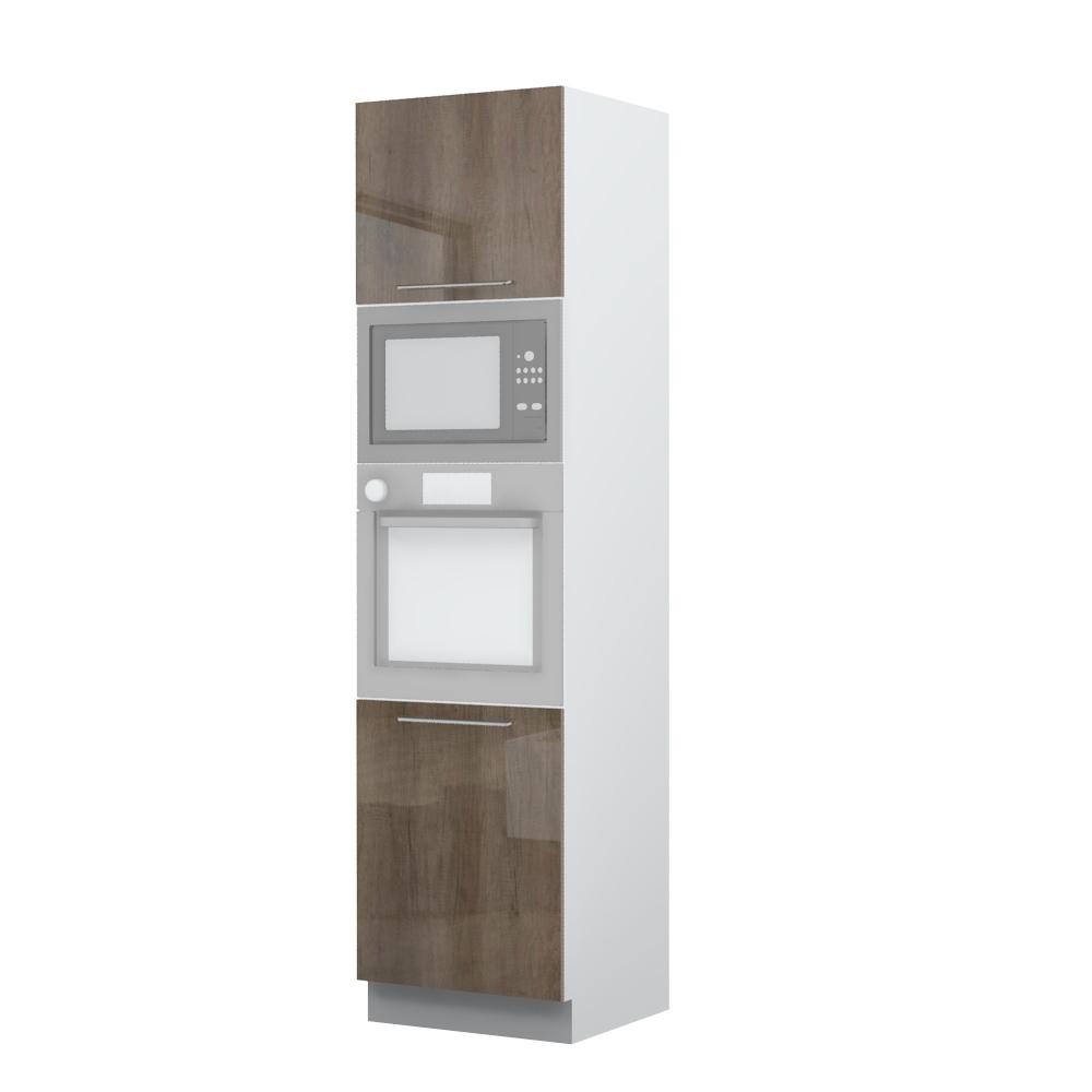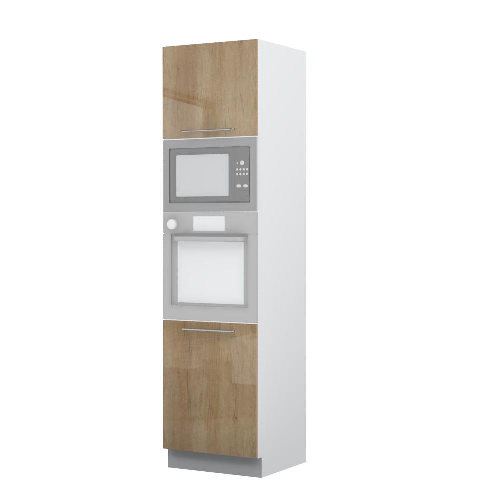 Kombinovani kuhinjski element, visine 148cm, predviđen za ugradnju frižidera. Korpus elementa je od univera debljine 18mm i može biti u drvo dekorima bele boje, Slonova kost i Nebraska hrast. Front je od profilisanog medijapana u boji prema Vašem izboru iz ponuđene palete boja ovog modela. Plafon elementa je radna ploča u jednom od sedam različitih dekora iz ponude. Korpus elementa je kantovan sa zadnje strane. Ima podesive nožice za nivelisanje na svim površinama. Soft-close šarke i sokla sa dihtung gumom uračunati su u cenu proizvoda. U ponudi su šest dekora sokle. Mogućnost odabira više modela ručica u različitim dimenzijama, koje nisu uračunate u cenu elementa. Istaknite završne bočne strane kuhinje ugradnjom dodatnih panela, debljine 16mm, lakiranih UV lakom u visokom sjaju u boji prema Vašem izboru iz ponuđene palete boja ovog modela ili ugradnjom dodatnih panela od univera debljine 25mm, dostupnim u drvo dekorima bele boje i Nebraska hrast. Radni vek frižidera može se produžiti boljom cirkulacijom vazduha unutar elementa, uz pomoć aluminijumske rešetke, koja se ugrađuje u soklu.