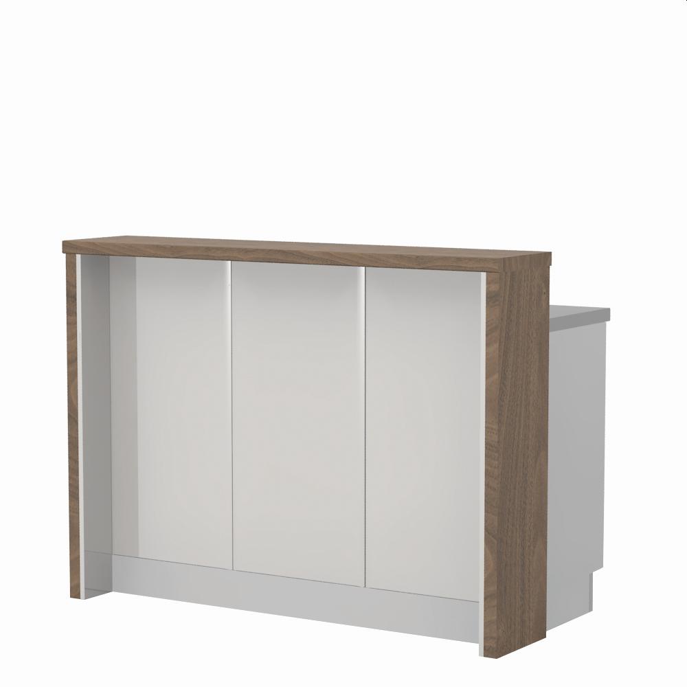 Kuhinjski pult prilagođen dužini radnih kuhinjskih elemenata od 135cm. U sastav pulta ulazi: radna ploča debljine 38mm u potrebnoj dužini, frontovi istog dizajna kao i izabran model kuhinje, bočne lajsne od medijapana u boji fronta i sokla sa dihtung gumom u potrebnoj dužini. Unutrašnje bočne aplikacije su u dekoru radne ploče.