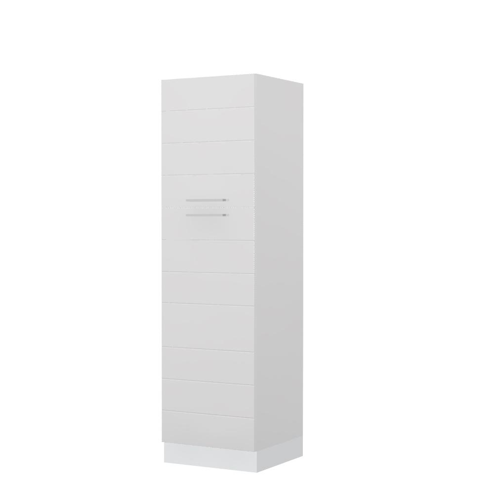 Kombinovani kuhinjski element, visine 216cm, predviđen za ugradnju frižidera. Kompatibilan je sa kuhinjama sa visećim elementima visine 72cm (V7). Korpus elementa je od univera debljine 18mm i može biti u drvo dekorima bele boje, Slonova Kost i Nebraska Hrast. Front je od profilisanog medijapana u boji prema Vašem izboru iz ponuđene palete boja ovog modela. Ima jednu policu i jedan štelujući panel sa metalnim “L†nosačima, za pozicioniranje ugradnog frižidera. Korpus elementa je kantovan sa zadnje strane. Ima podesive nožice za nivelisanje na svim površinama. Soft-close šarke i sokla sa dihtung gumom uračunati su u cenu proizvoda. U ponudi su šest dekora sokle. Mogućnost odabira više modela ručica u različitim dimenzijama, koje nisu uračunate u cenu elementa. Istaknite završne bočne strane kuhinje ugradnjom dodatnih panela lakiranih UV lakom u visokom sjaju debljine 16 mm,i to:u kristalno beloj i bež boji ili drvo dekorima Nebraske i Tamne Nebraske ili ugradnjom dodatnih panela od univera debljine 25 mm,dostupnim u drvo dekorima bele boje,Polarnog bora i Nebraska Hrast. Postignite efektan izgled kuhinje postavljanjem završnih lajsni debljine 25mm, od univera u ponuđenim drvo dekorima ili od medijapana u boji fronta Vaše kuhinje. Štelujući panel, kao dodatna oprema, može imati funkciju dodatne police. Radni vek frižidera može se produžiti boljom cirkulacijom vazduha unutar elementa, uz pomoć aluminijumske rešetke, koja se ugrađuje u soklu.