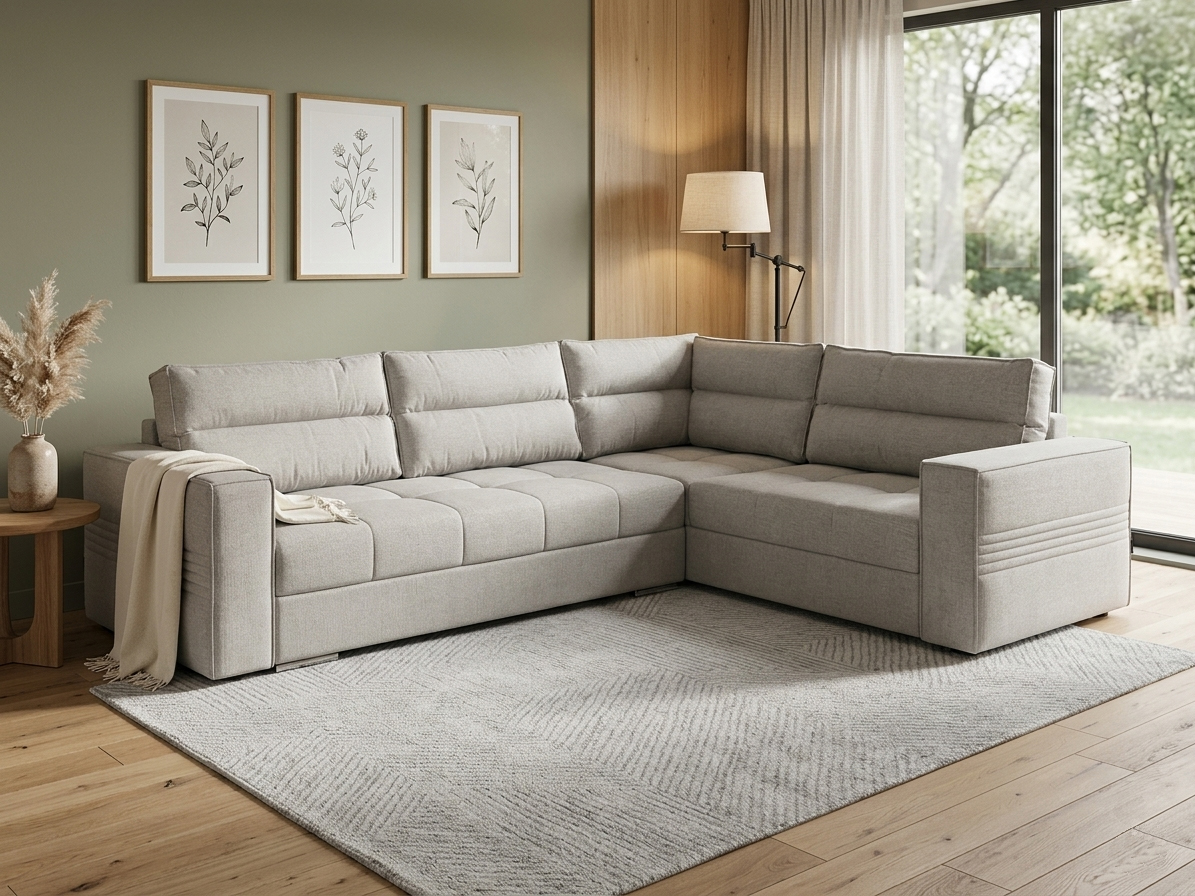 Dimenzije: 300x245 cm Garnitura se razvlači te posjeduje sanduk za odlaganje stvari! Mogućnosti odabira vrste materijala i boje prilikom narudžbe!