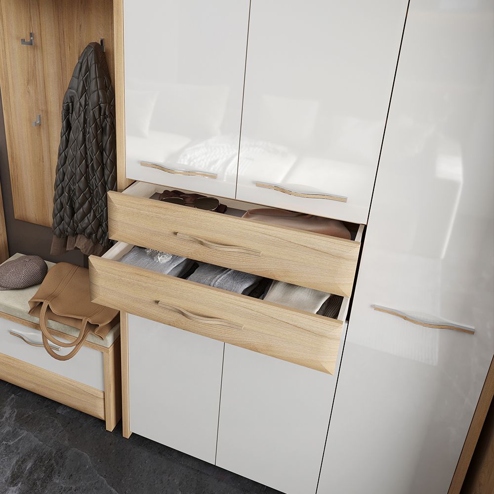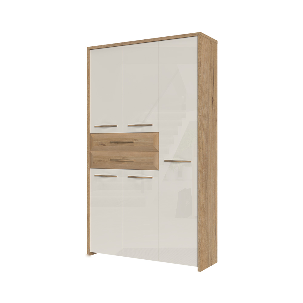 Vitrina za predsoblje iz kolekcije GALA sa pet krila i dve fioke, modernog dizajna i jake geometrijske forme.
