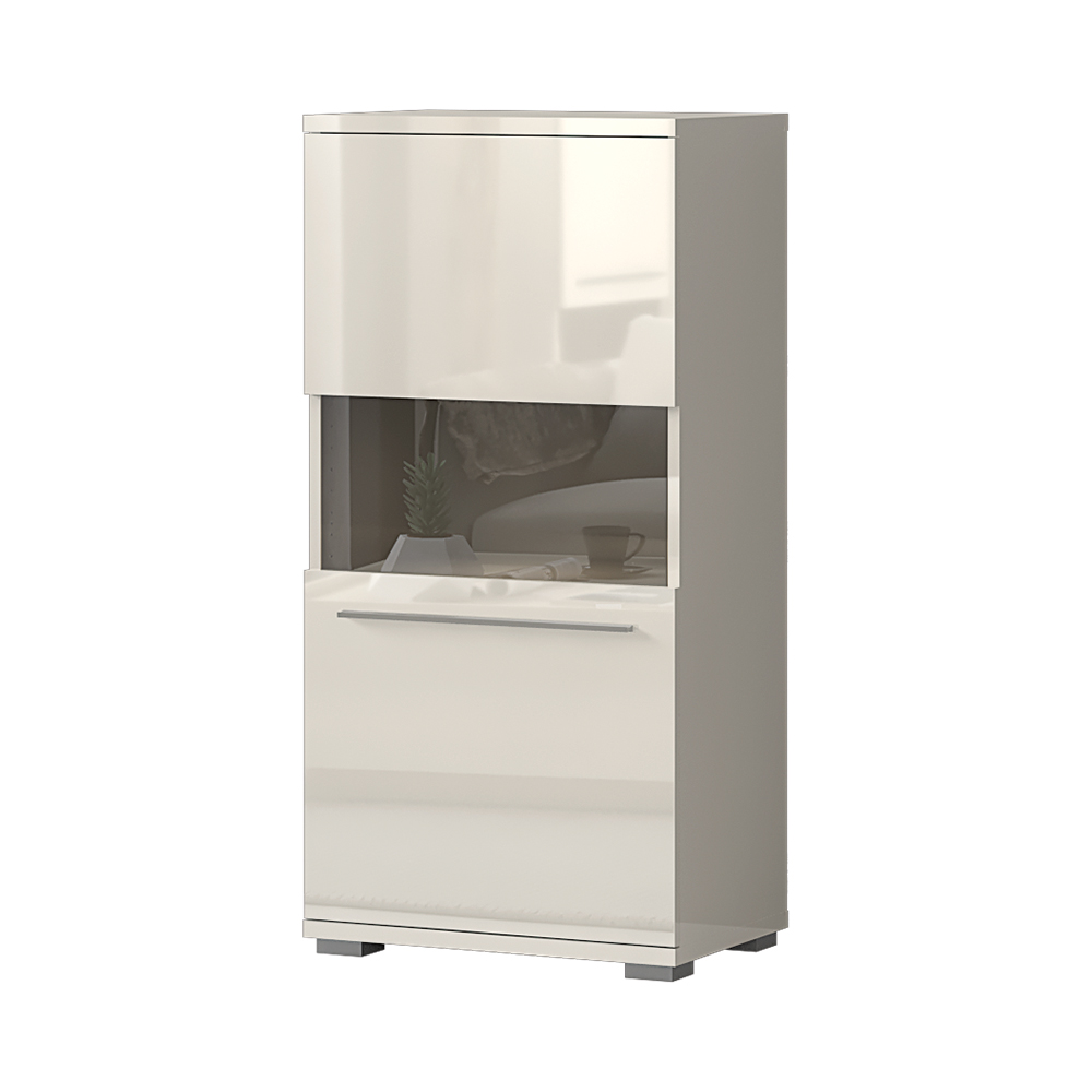 Funkcionalna vitrina iz kolekcije namještaja PIANO sa jednim staklenim krilom, dizajnirane geometrijske forme.
