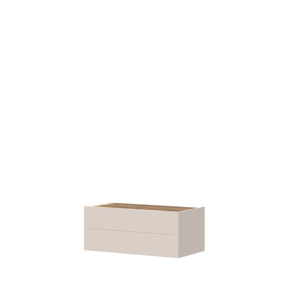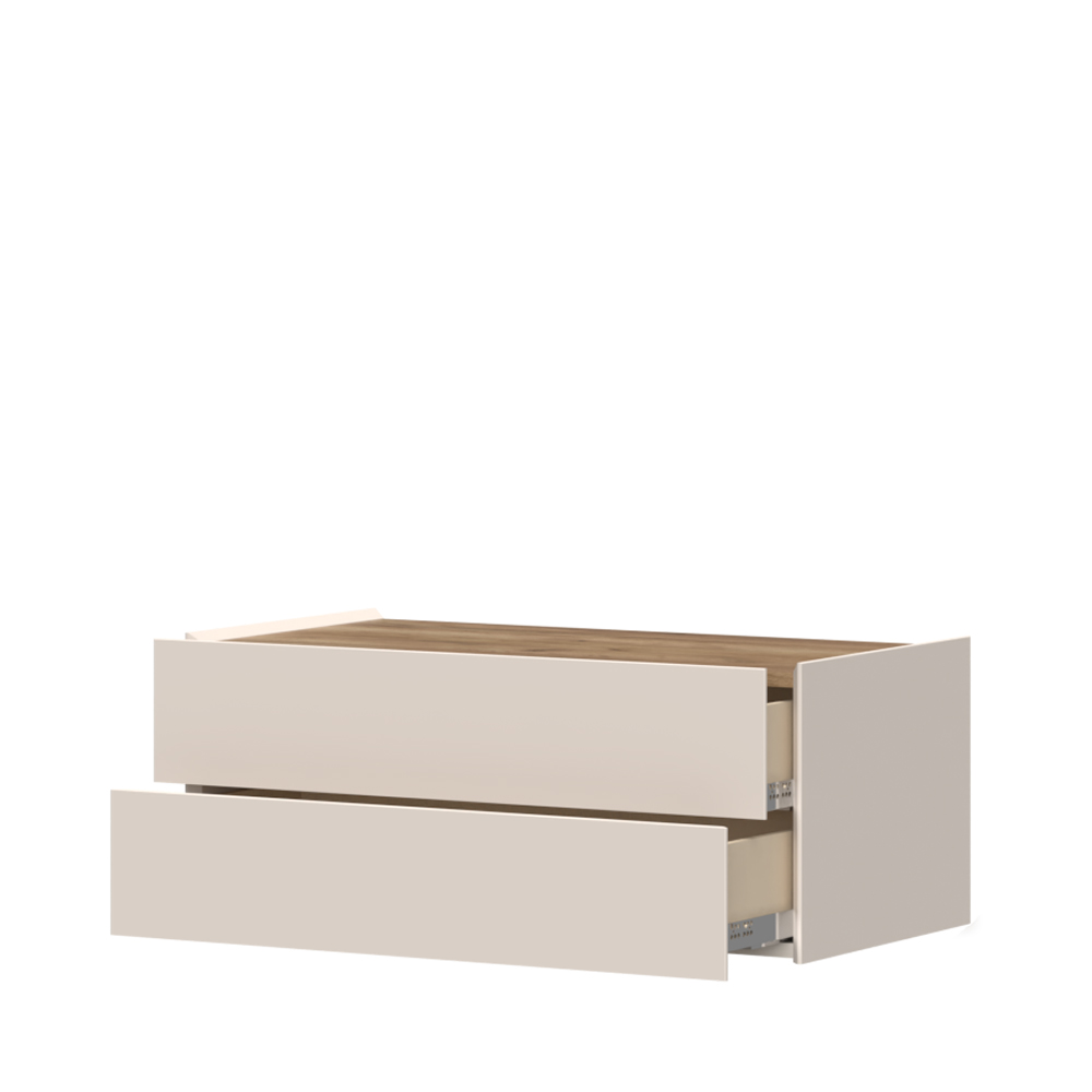 -bočne strane i frontovi fioka izrađeni su od medijapana, obostrano lakirani UV lakom sa soft mat efektom u boji kašmira