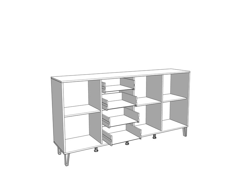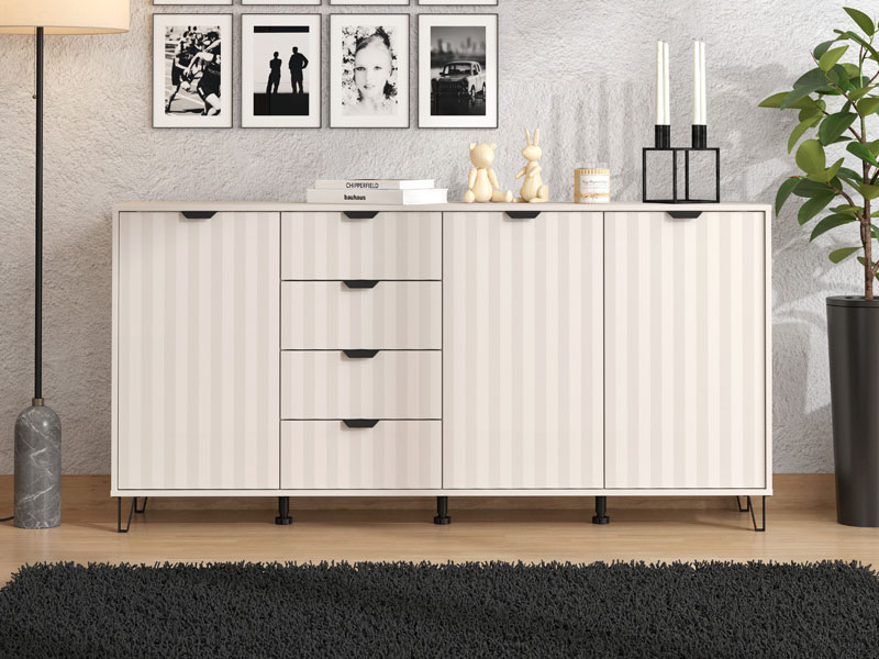 Odlično raspoređen upotrebni prostor ove komode čine tri zatvorena pregradna dijela i četiri praktične fioke.