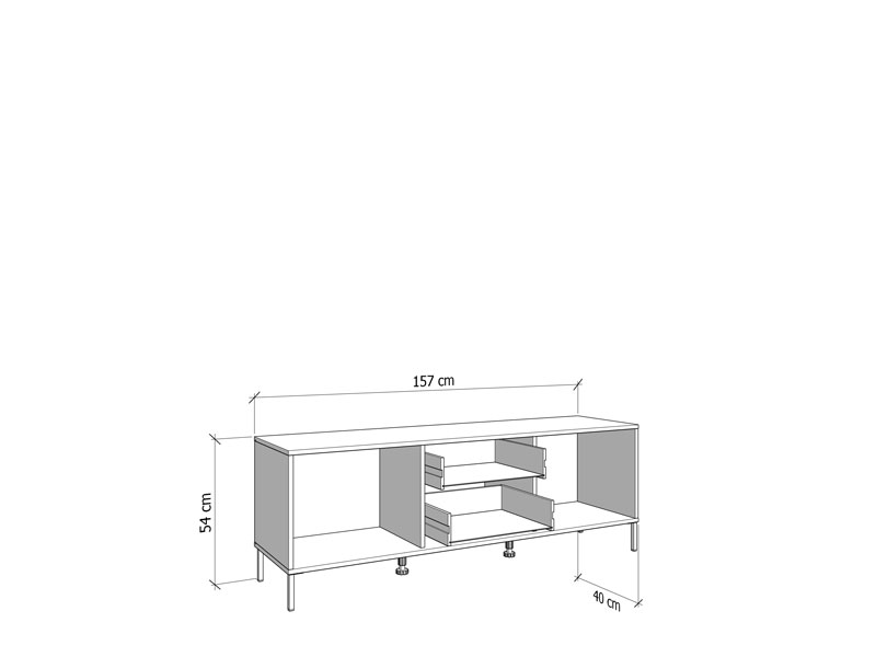 TV polica 3K2F2V je funkcionalni dodatak za opremanje dnevnog boravka. Kombinacija dekora artisan hrasta, crnog dekora sa teksturom, kao i artisan hrast dekora sa prugama, čini spoj koji prati dizajnerske trendove i učiniće svaki ambijent oličenjem modernog stila. Dva bočna zatvorena segmenta i otvorena polica efektno doprinose funkcionalnoj organizaciji dnevnog boravka. Deo je istoimenog sistema elemenata za uređenje ambijenta dnevnog boravka.
