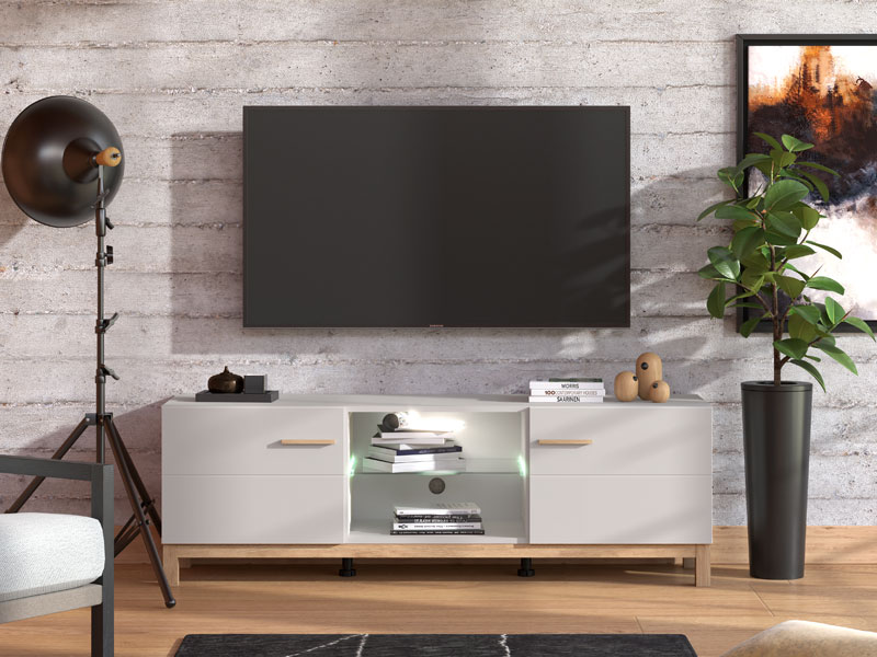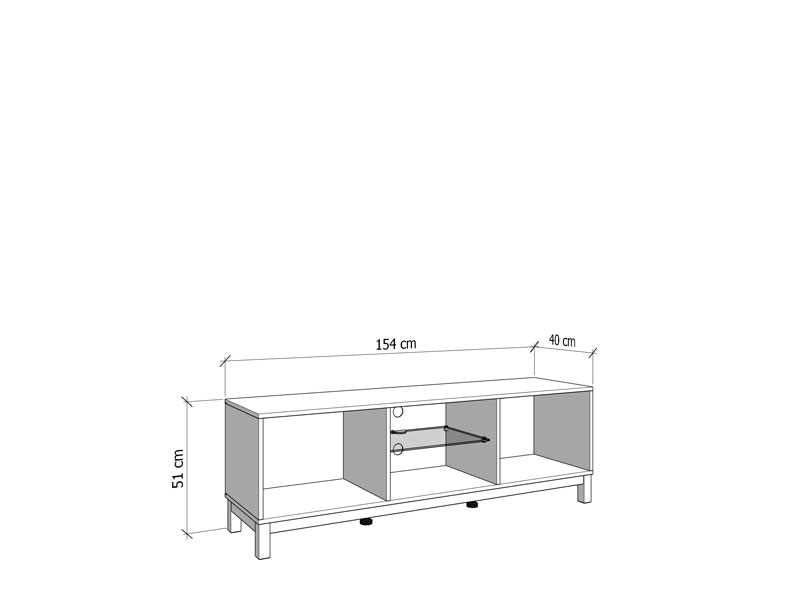 TV polica TV 154 3K2V je funkcionalni dodatak za opremanje dnevnog boravka. Atraktivni kašmir dekor donosi u prostor notu elegancije i ambijentalne topline. Dva bočna zatvorena segmenta i otvorene police, efektno doprinose funkcionalnoj organizaciji dnevnog boravka. Deo je istoimenog sistema elemenata za uređenje ambijenta dnevnog boravka, koji predstavlja moderno rešenje za stilizovanje ambijenta doma.