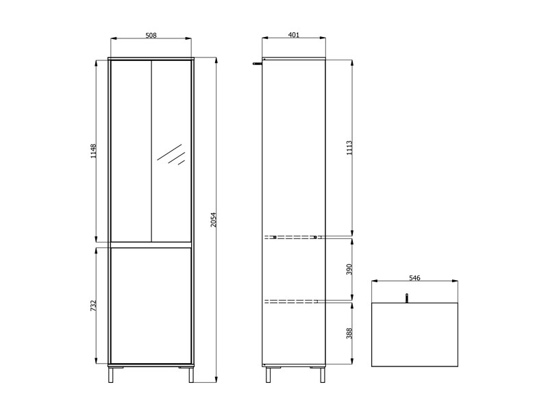 Dimenzije (šxdxv): 54,5x40x205,5 cm